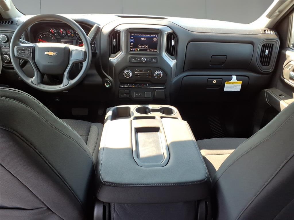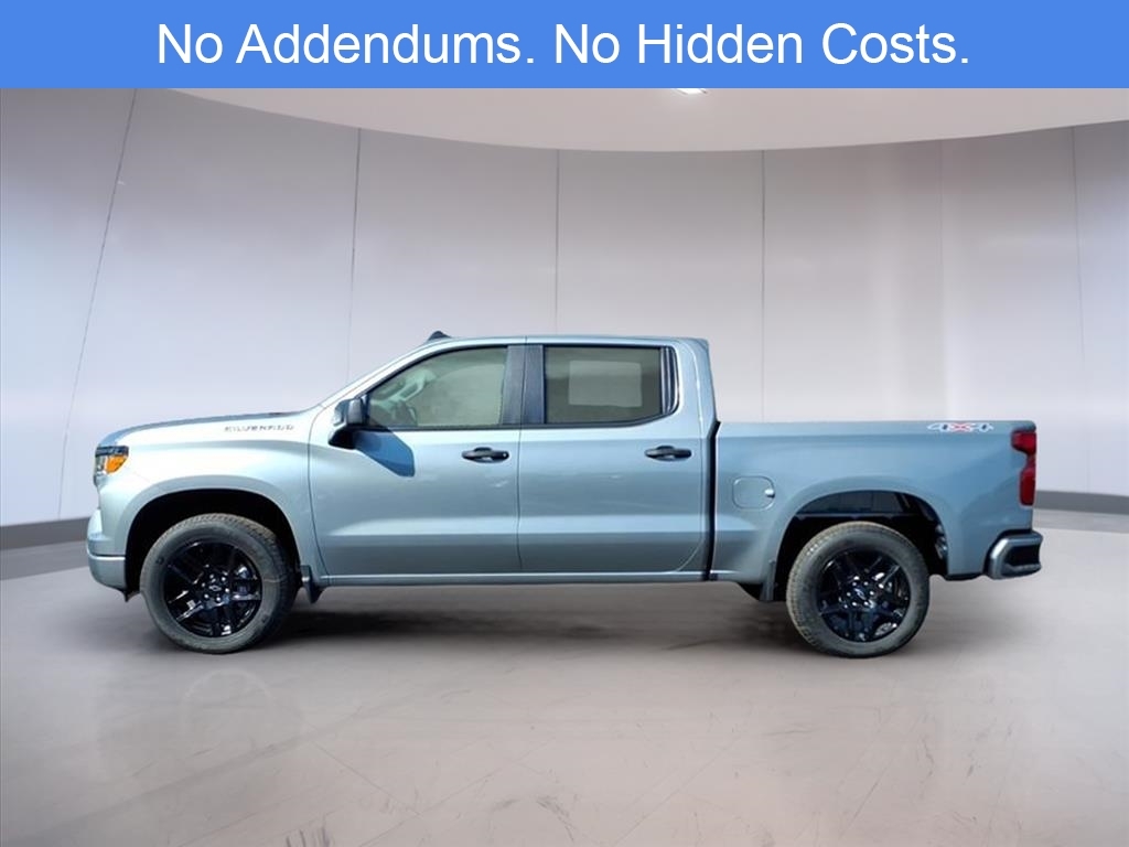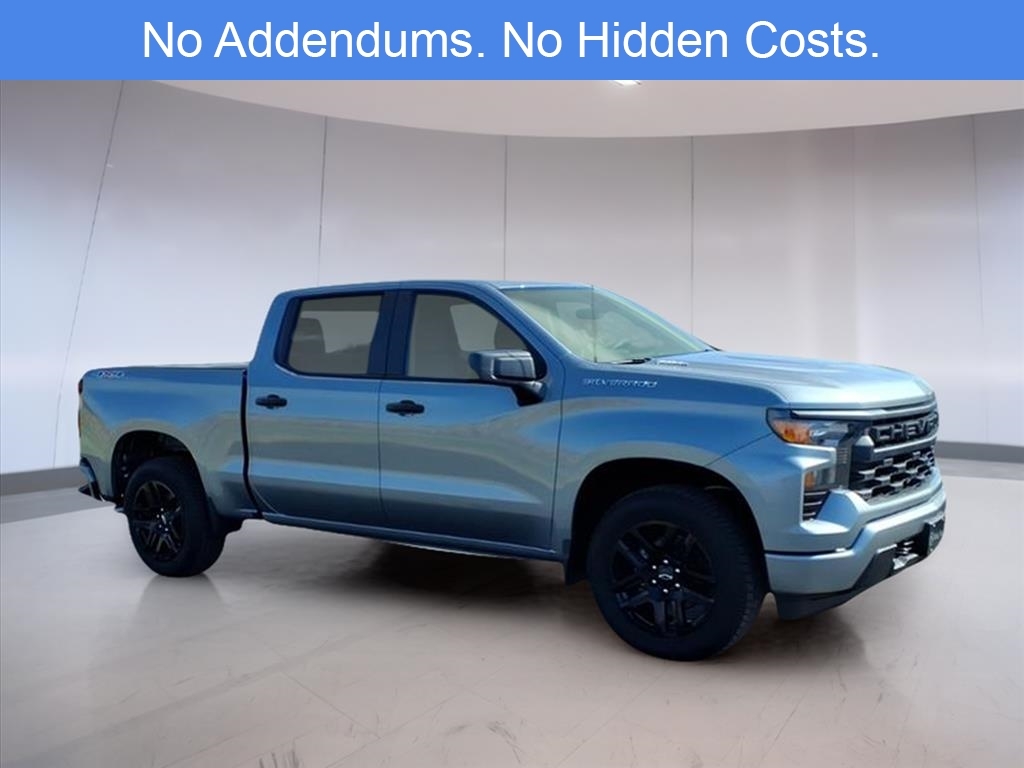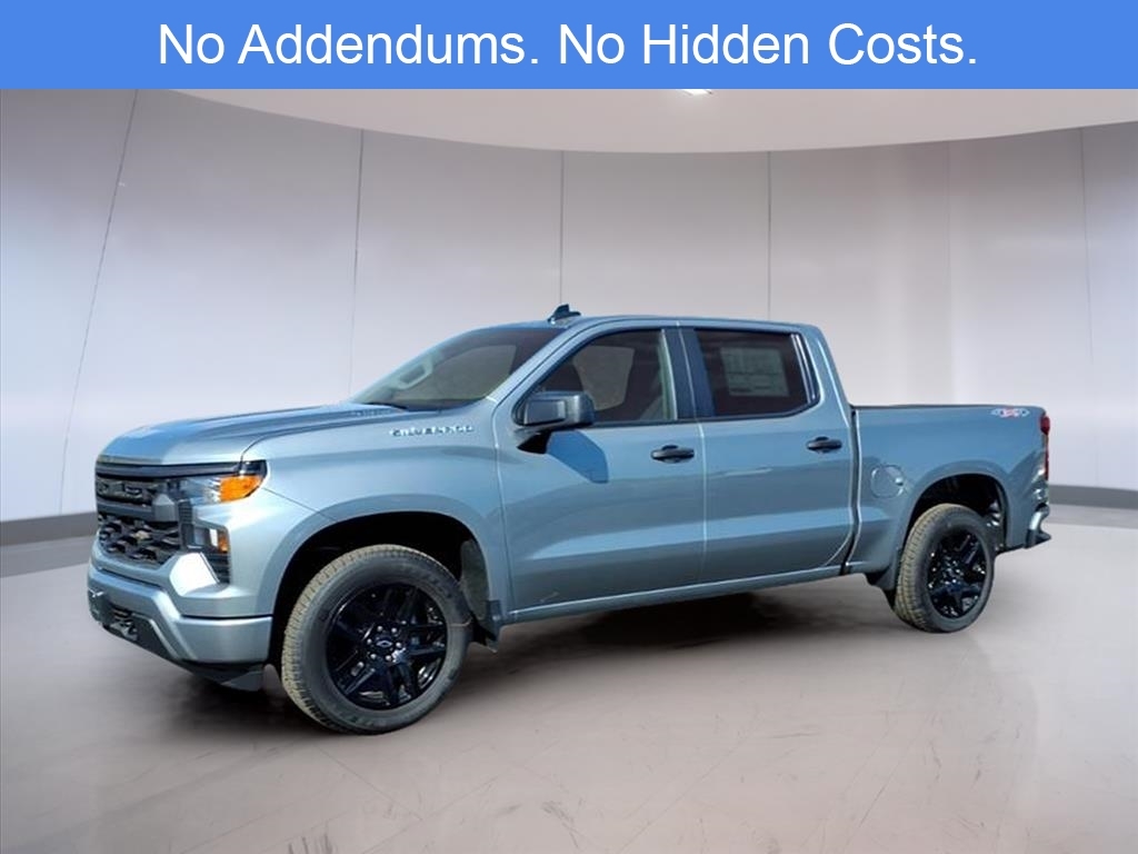 The 2026 Chevrolet Silverado 1500 Custom in Sterling Gray Metallic is a full-size pickup designed to balance everyday utility with modern connectivity and safety. This particular model is configured as a 4WD Crew Cab and is powered by a 2.7L turbocharged I4 engine delivering 310 horsepower. Its paired with an 8-speed automatic transmission and a 3.42 rear axle ratio, optimizing both performance and efficiency. The High Capacity Suspension Package is equipped for enhanced payload handling, and the Auto-Locking Rear Differential provides additional traction when needed. The Silverado Custom trim includes the Custom Convenience and Custom Value Packages, which bring added comfort, functionality, and appearance upgrades. Inside, the Jet Black cloth interior features a 40/20/40 split-bench front seat with a 10-way power-adjustable driver seat and lumbar support. The rear bench folds in a 60/40 split, offering flexible cargo and passenger configurations. The cabin is finished with color-keyed carpeting and rubberized vinyl floor mats for durability and easy maintenance. Technology is well-integrated throughout the vehicle. The Chevrolet Infotainment 3 System features a touchscreen display and supports Apple CarPlay and Android Auto. Bluetooth connectivity, dual rear USB charge ports, a 6-speaker audio system, and SiriusXM trial access are also included. The truck is OnStar Services capable and Wi-Fi hotspot ready, making it easier to stay connected on the road. Driver assistance and safety features are notable for a truck in this class. Standard features include a Forward Collision Alert, Front Pedestrian Braking, Lane Keep Assist with Lane Departure Warning, IntelliBeam automatic high beams, and a Following Distance Indicator. The HD Rear Vision Camera, Hitch Guidance, and Integrated Trailer Brake Controller support confident trailering. Teen Driver technology and a Theft Deterrent System are also included as part of Chevrolets standard safety suite. The exterior of the