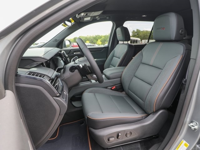 Dual front airbags, front seat mounted side-impact airbags, driver’s side knee airbag, dual front/rear side curtain airbags, four-wheel disc brakes with anti-lock, brake assist, electronic brake force distribution, all-speed traction control, hill start assist, daytime running lights, Teen Driver system, automatic power door locks, keyless open and engine start, OnStar communications system, rear vision camera, extended range remove keyless entry, tire fill alert, road emergency tool kit, and tire pressure monitoring system. SLE-1 adds LED daytime running lamps. SLE-2 adds remote vehicle engine start and fog lamps. SLT-1 adds lane change alert with side blind zone alert, rear cross traffic alert, rear park assist, and universal home remote. SLT-2 adds low speed forward automatic braking, front pedestrian braking, IntelliBeam headlamps, front/rear park assist, lane keep assist with lane departure warning, following distance indicator, forward collision alert, and safety alert seat. Denali adds touch screen navigation system, high intensity discharge headlamps, and hands-free automatic power lift gate.