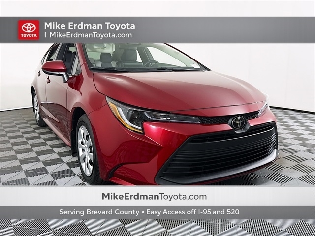 BLUETOOTH, REAR BACK UP CAMERA, APPLE/ANDROID CAR PLAY, LANE DEPARTURE WARNING, LOCAL TRADE, FRESH OIL CHANGE, CARFAX ONE OWNER VEHICLE. Toyota 2025 Corolla Ruby Flare Pearl LE Certified. Toyota Gold Certified Details: * Roadside Assistance * Powertrain Limited Warranty: 84 Month/100,000 Mile (whichever comes first) from TCUV purchase date * 160 Point Inspection * Warranty Deductible: $0 * Limited Warranty: 12 Month/12,000 Mile Limited Comprehensive Warranty: 12 Month/12,000 Mile (whichever comes first) from certified purchase date * Vehicle History * Transferable Warranty * Roadside Assistance for 7 Year / 100,000 Mile. Standard New-Car Financing Rates Available. Warranty honored at over 1,400 Toyota dealers in the continental U.S. & Canada. Trade-ins accepted. Trouble-free handling of your transaction, including DMV paperwork 2.0L I4 DOHC 16V FWD CVT Recent Arrival! Odometer is 9274 miles below market average! 32/41 City/Highway MPG