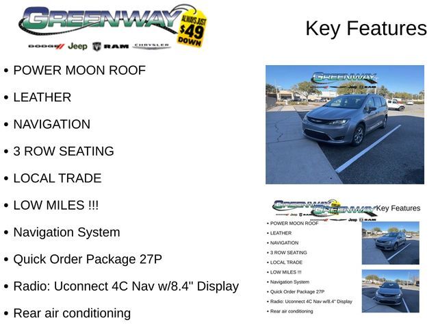 POWER MOON ROOF, LEATHER, NAVIGATION, 3 ROW SEATING, LOCAL TRADE, LOW MILES !!!, ABS brakes, Apple CarPlay/Android Auto, Automatic temperature control, High-Intensity Discharge Headlights, Navigation System, ParkView Rear Back-Up Camera, Quick Order Package 27P, Radio: Uconnect 4C Nav w/8.4" Display, Rain sensing wipers, Rear air conditioning, Remote keyless entry, Steering wheel mounted audio controls, Touring Suspension, Turn signal indicator mirrors, Wheels: 18" x 7.5" Aluminum Polished.