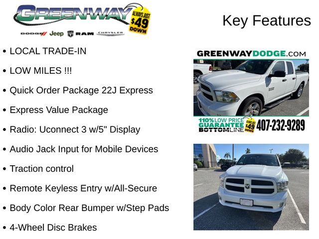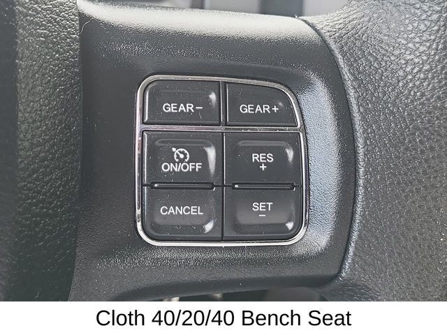 Dual front airbags, front seat-mounted side-impact airbags, dual head curtain side-impact airbags, driver’s knee airbag, four-wheel disc brakes with anti-lock, brake assist, rainy day braking, ready alert braking, all-speed traction control, electronic roll mitigation, electronic stability control, trailer-sway control, brake override, remote keyless entry, automatic headlamps, engine immobilizer, full-size spare tire, and tire pressure monitor. Express adds fog lamps. SLT adds Bluetooth hands free phone system. Outdoorsman adds navigation system, security alarm, and universal garage door opener. Sport adds power adjusting pedals and ParkView rear backup camera. Laramie Longhorn adds remote engine start system and ParkSense front/rear park assist system. Laramie Limited adds SmartBeam headlights, rain-sensing windshield wipers, and Keyless Enter ‘n Go.