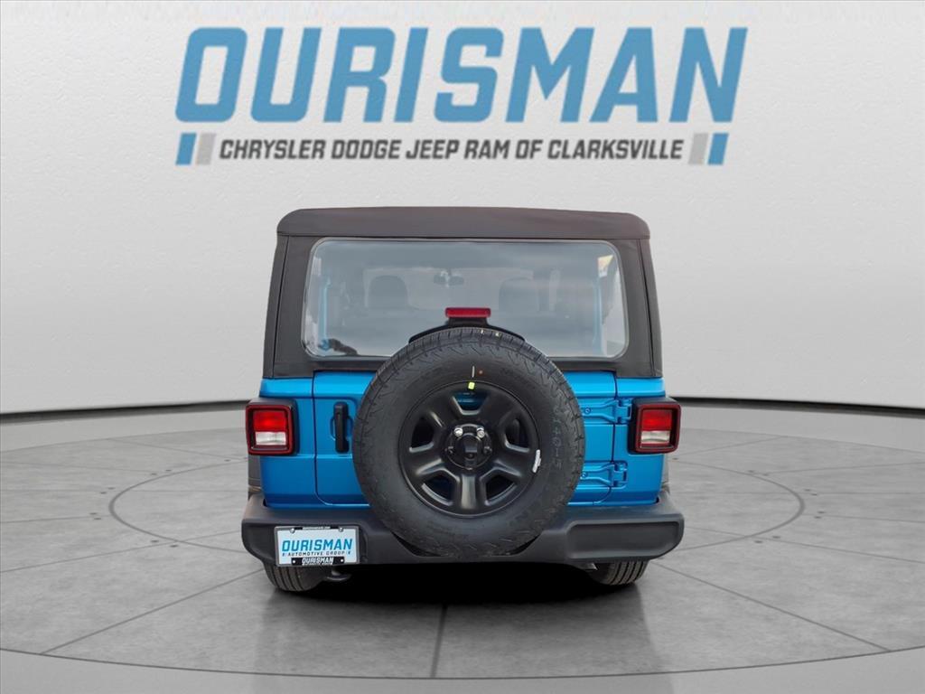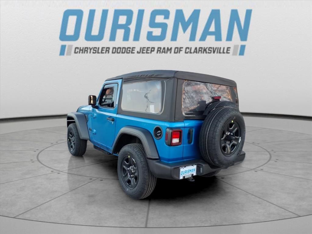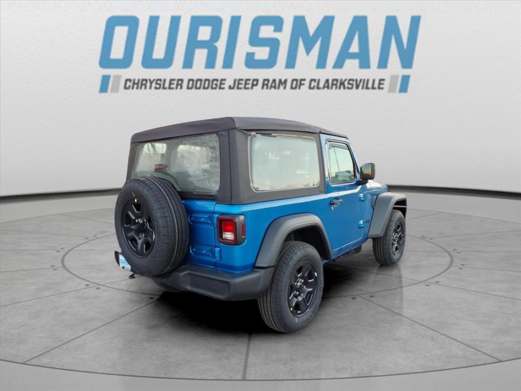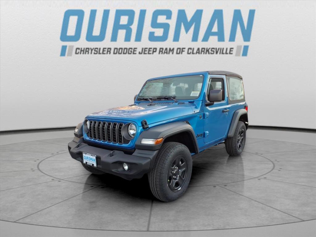 This NEW 2026 Hydro Blue Pearl Coat Jeep Wrangler Sport 4WD is well equipped and includes these features and benefits: Quick Order Package 22B Sport, 12.3Touchscreen Display, 3.45 Overall Top Gear Ratio, 4-Wheel Disc Brakes, 4G LTE Wi-Fi Hot Spot, 8 Speakers, ABS brakes, Air Conditioning, AM/FM radio: SiriusXM with 360L, Apple CarPlay, Apple CarPlay/Android Auto, Aux Battery, Brake assist, Cloth Low-Back Bucket Seats, Compass, Connectivity - US/Canada, Delay-off headlights, Driver door bin, Driver vanity mirror, Dual front impact airbags, Dual front side impact airbags, Electronic Stability Control, For More Info, Call 800-643-2112, Front anti-roll bar, Front Bucket Seats, Front Center Armrest w/Storage, Front fog lights, Front reading lights, Google Android Auto, Illuminated entry, Integrated Center Stack Radio, Integrated roll-over protection, Jeep Trail Rated Kit, Low tire pressure warning, MOPAR All-Weather Floor Mats, Non-Lock Fuel Cap Without Discriminator, Normal Duty Suspension, Occupant sensing airbag, Outside temperature display, Overhead airbag, Panic alarm, ParkView Rear Back-Up Camera, Passenger door bin, Passenger vanity mirror, Power steering, Power windows, Radio data system, Radio: Uconnect 5 with 12.3Display, Rear anti-roll bar, Rear reading lights, Remote keyless entry, SiriusXM Radio Service, SiriusXM with 360L, Speed control, Steering wheel mounted audio controls, Stop-Start Dual Battery System, Tachometer, Telescoping steering wheel, Tilt steering wheel, Traction control, Trip computer, Variably intermittent wipers, and Wheels: 17x 7.5Black Steel Styled. Price excludes tax, title, tags, registration, freight/destination fees, electronic filing fee, and a $800 processing fee (not required by law). Optional iKon coverage ($1,295) not included. Most prices include applicable manufacturer rebates and incentives (dealer retains incentives). May require financing through dealer approved lender $2000 discount forfeited if not financing with dealer. Incentives and pricing may depend on manufacturer incentive program expiration dates which can vary Prices and factory incentives shown are for MD, VA, and DC residents only. Customers outside these areas may not qualify and pricing may vary based on residency and eligibility. All offers subject to change without notice. Please confirm vehicle availability, pricing, and incentive qualifications with Ourisman CDJR of Clarksville, serving Columbia, Laurel, Ellicott City, Baltimore, and the