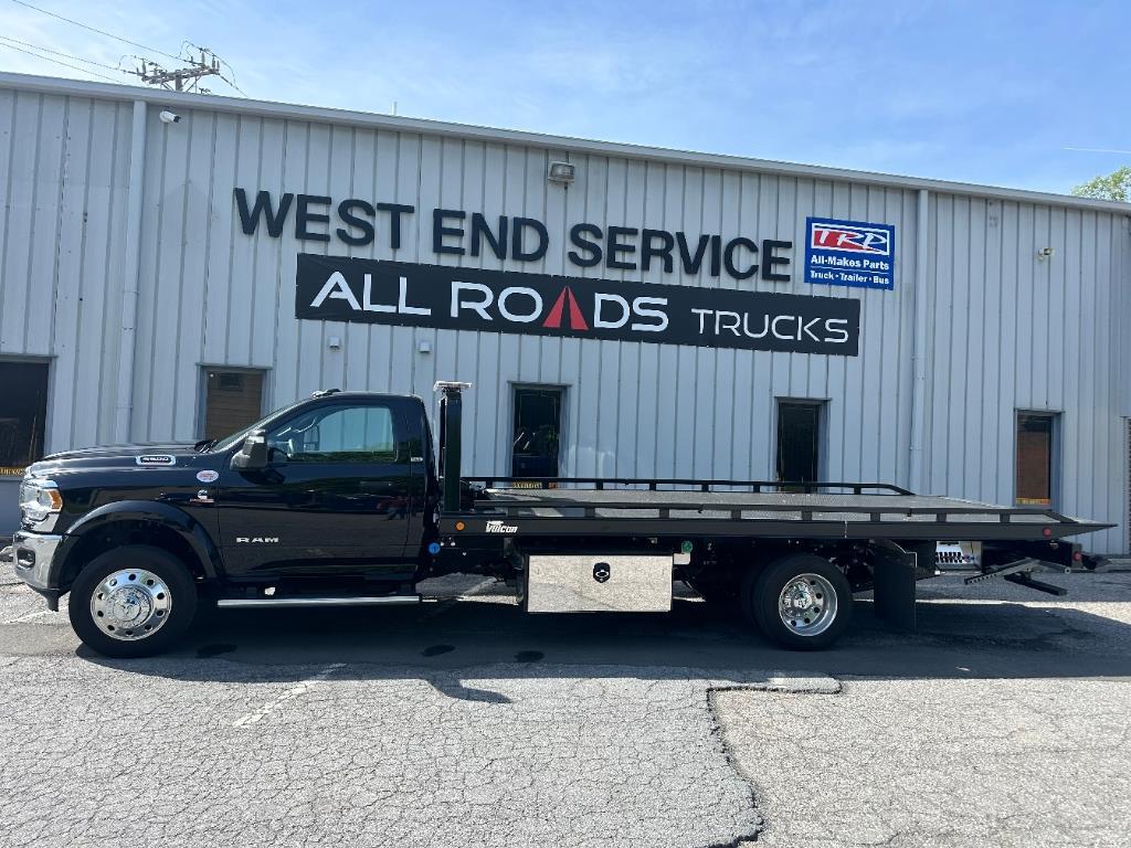New 2024 Ram 5500SLT 4X4 / Vulcan 19.6 Steel 10 Series Rollback Cummins B.6 7L Automatic Transmission Power Locks and Windows 19.5 Polished aluminum wheels 3PC Removable steel tube rails bed mount pylon. 8,000# Ramsey Winch Two 48 Painted Steel Toolboxes w/ SS Doors Federal Signal Allegiant LED light bar Upper / Lower LED work lights Towmate wireless tow light w/ hard wire plug