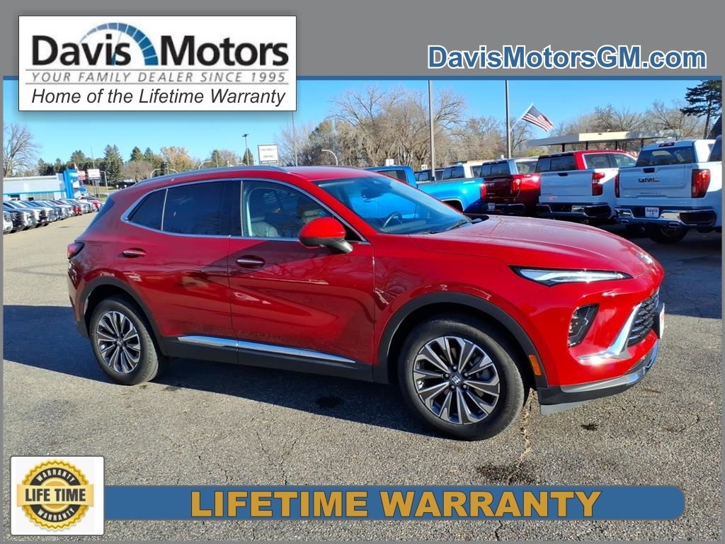 THE 2025 BUICK ENVISION PREFERRED AWD FEATURES A QUIET, UPSCALE CABIN WITH EBONY INTERIOR, 8-WAY POWER DRIVER SEAT WITH MEMORY, LEATHER-WRAPPED STEERING WHEEL, AND BOSE 9-SPEAKER PREMIUM AUDIO. A MASSIVE 30-INCH ULTRA-WIDE DISPLAY WITH GOOGLE BUILT-IN OFFERS WIRELESS APPLE CARPLAY, ANDROID AUTO, NAVIGATION, AND PERSONALIZED CONNECTIVITY OPTIONS. EXTERIOR HIGHLIGHTS INCLUDE BRILLIANT RED PAINT, ENHANCED LED HEADLAMPS, HEATED POWER MIRRORS, AND ADVANCED SAFETY FEATURES LIKE ADAPTIVE CRUISE CONTROL, HD SURROUND VISION, AND AUTOMATIC EMERGENCY BRAKING FOR SUPERIOR CONFIDENCE ON THE ROAD. AWD 9-Speed Automatic 2.0L Turbocharged *All of our vehicles with 60,000 miles or less come with a lifetime powertrain warranty.* 22/28 City/Highway MPG