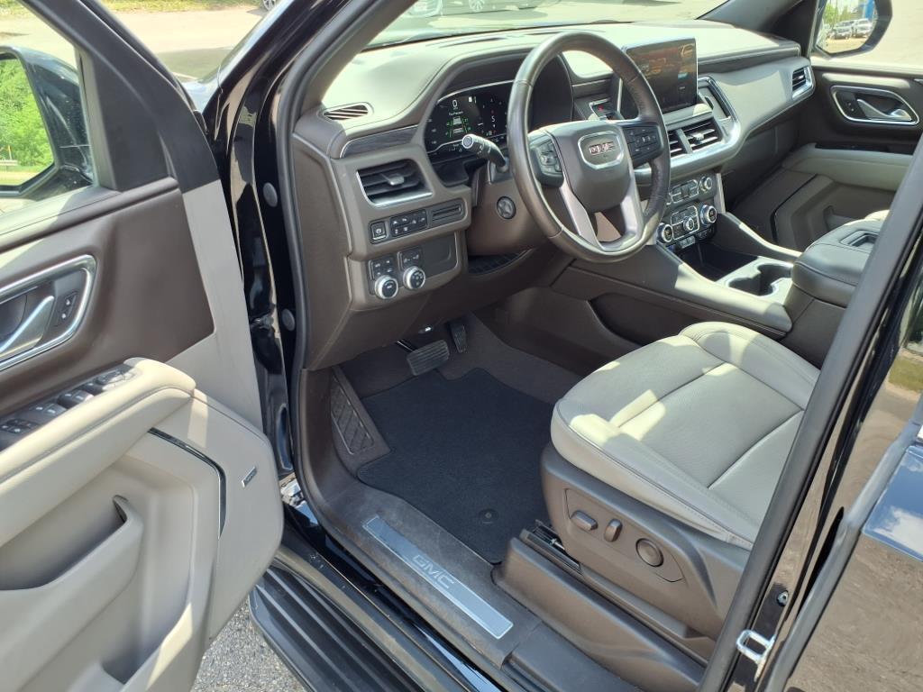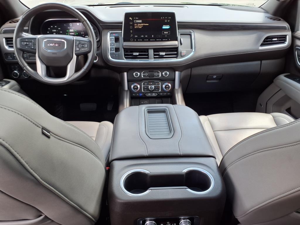 THIS 2022 YUKON SLT COMBINES LUXURY AND FUNCTION WITH A DARK WALNUT/SLATE LEATHER INTERIOR, HEATED AND POWER-FOLDING SECOND- AND THIRD-ROW SEATS, TRI-ZONE CLIMATE CONTROL, A PANORAMIC SUNROOF, AND A 10.2GMC PREMIUM INFOTAINMENT SYSTEM WITH GOOGLE BUILT-IN, WIRELESS APPLE CARPLAY, AND A BOSE 9-SPEAKER AUDIO SYSTEM. ITS 5.3L ECOTEC3 V8 ENGINE AND 10-SPEED AUTOMATIC TRANSMISSION ARE PAIRED WITH A MECHANICAL LIMITED-SLIP DIFFERENTIAL, PREMIUM SMOOTH RIDE SUSPENSION, AND ADVANCED TRAILERING SUPPORT FOR STRONG PERFORMANCE IN ANY SEASON. FINISHED IN ONYX BLACK, LED LIGHTING, HANDS-FREE POWER LIFTGATE, AND ASSIST STEPS, THIS SUV OFFERS BOLD STYLE AND ADVANCED SAFETY FEATURES INCLUDING HD SURROUND VISION, LANE KEEP ASSIST, REAR PEDESTRIAN ALERT, AND MORE. 4WD. 4WD 10-Speed Automatic with Overdrive EcoTec3 5.3L V8 *All of our vehicles with 60,000 miles or less come with a lifetime powertrain warranty.*
