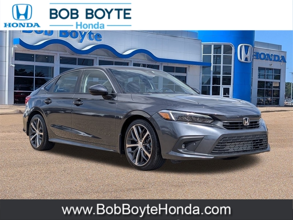 2024 Honda Civic Meteorite Gray Metallic Touring 4D Sedan 1.5L I4 DOHC 16V FWD CVT Certified. Bought Here, Traded Here, Never A Rental, Local Trade, Honda Dealer Serving Jackson MS, Accident reported: minor damage, Minor damage is usually cosmetic, including dents or scratches to the vehicle body, Financing Is Available For Everyone, 12 Speakers, Adaptive Cruise Control: Adaptive Cruise Control (ACC) with Low-Speed Follow, Alloy wheels, AM/FM radio: SiriusXM, Apple CarPlay/Android Auto, Automatic temperature control, Blind Spot Information (BSI) System warning, Bose Premium Audio System, Electronic Stability Control, Emergency communication system: HondaLink, Exterior Parking Camera Rear, Front dual zone A/C, Fully automatic headlights, Heated Front Bucket Seats, Illuminated entry, Leather-Trimmed Seating Surfaces, Navigation system: Honda Satellite-Linked Navigation System, Panic alarm, Power driver seat, Power moonroof, Power passenger seat, Remote keyless entry, Security system, Steering wheel mounted audio controls, Wheels: 18Alloy w/Gloss Shark Gray Inserts. This vehicle has been through an extensive multi-point inspection by an ASE Certified Technician. All necessary services have been done for the appropriate mileage interval as deemed necessary. We have also reconditioned this vehicle inside and out to provide you with as near a new car experience as can be expected from a vehicle of this year and mileage. Buy with confidence. Family-owned & operated. Get Pre-Approved at https://www.bobboytehonda.com/get-pre-qualified.html Free Vehicle History report. Large Metro Jackson MS Used Car Super Store serving residents of Brandon, Ridgeland, Canton, Crystal Springs Yazoo City, Vicksburg, Forest, Carthage, Philadelphia, Newton, Meridian, Laurel, Hattiesburg, McComb, Wesson, Brookhaven, Mendenhall, Magee and all of Central Mississippi. Call Bob Boyte Honda today at 601-591-5000. CARFAX One-Owner. Odometer is 851 miles below market average! 31/38 City/Highway MPG Hond