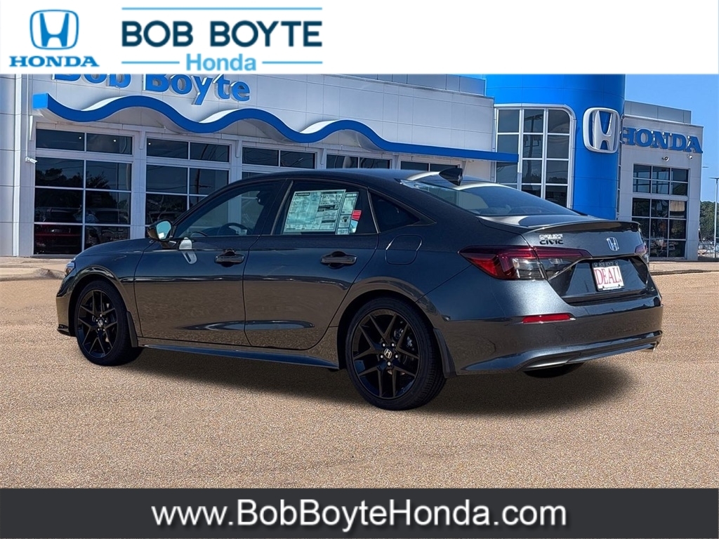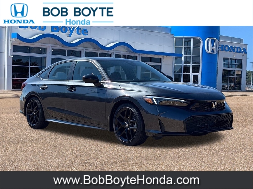 2026 Honda Civic Sport Meteorite Gray Metallic FWD 2.0L I4 DOHC 16V CVT Bring Us All Offers On This Vehicle, Honda Dealer Serving Jackson MS, Financing Is Available For Everyone, Black Artificial Leather, 8 Speakers, Adaptive Cruise Control: Adaptive Cruise Control (ACC) with Low-Speed Follow, Alloy wheels, AM/FM radio, Apple CarPlay/Android Auto, Auto High-beam Headlights, Automatic temperature control, Blind Spot Information (BSI) System warning, Brake assist, Cloth/Leatherette Seating Surfaces, Delay-off headlights, Dual front impact airbags, Dual front side impact airbags, Electronic Stability Control, Emergency communication system: HondaLink, Exterior Parking Camera Rear, Four wheel independent suspension, Front Bucket Seats, Fully automatic headlights, Illuminated entry, Knee airbag, Leather Shift Knob, Leather steering wheel, Occupant sensing airbag, Overhead airbag, Panic alarm, Power steering, Power windows, Radio data system, Radio: 180-Watt Audio System, Rear side impact airbag, Remote keyless entry, Security system, Speed control, Speed-sensing steering, Steering wheel mounted audio controls, Traction control, Wheels: 18Gloss Black Alloy. 31/39 City/Highway MPG Get our lowest available price on any new Honda in stock now by completing this request: https://www.bobboytehonda.com/honda-auto-price-request.htm Our Honda Auto Finance Staff works with all credit types, including bad credit and no credit. Get Pre-Approved for an Auto Loan in minutes now: https://www.bobboytehonda.com/financing/get-pre-approved.htm Let us show you why we have so many people driving around Jackson, Ridgeland, Madison, Pearl, Flowood, Florence, Clinton, Yazoo City, Canton, Newton and Vicksburg MS in a new Honda car, truck, SUV or van they bought at our Brandon, Mississippi Honda Dealership.