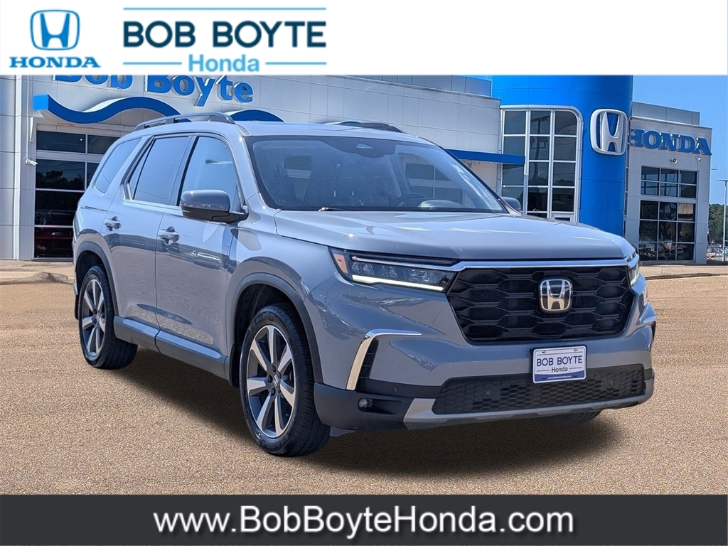 2025 Honda Pilot Sonic Gray Pearl Touring 4D Sport Utility 3.5L V6 DOHC 24V FWD 10-Speed Automatic Certified. Bought Here, Traded Here, Never A Rental, Local Trade, Honda Dealer Serving Jackson MS, This vehicles oil change history, as reported to CARFAX, follows the manufacturers recommendation, Financing Is Available For Everyone, 12 Speakers, 3rd row seats: split-bench, Adaptive Cruise Control: Adaptive Cruise Control (ACC) with Low-Speed Follow, Alloy wheels, AM/FM radio: SiriusXM, Apple CarPlay/Android Auto, Automatic temperature control, Blind Spot Information (BSI) System warning, Bose Premium Sound System, Electronic Stability Control, Emergency communication system: HondaLink, Exterior Parking Camera Rear, Front dual zone A/C, Fully automatic headlights, Heated Front Bucket Seats, HondaLink Subscription Services, Illuminated entry, Lane departure: Lane Keeping Assist System (LKAS) active, Leather Seat Trim, Memory seat, Navigation system: Honda Satellite-Linked Navigation System, Panic alarm, Power driver seat, Power Liftgate, Power moonroof, Power passenger seat, Rear air conditioning, Remote keyless entry, Security system, SiriusXM, Spoiler, Steering wheel mounted audio controls. This vehicle has been through an extensive multi-point inspection by an ASE Certified Technician. All necessary services have been done for the appropriate mileage interval as deemed necessary. We have also reconditioned this vehicle inside and out to provide you with as near a new car experience as can be expected from a vehicle of this year and mileage. Buy with confidence. Family-owned & operated. Get Pre-Approved at https://www.bobboytehonda.com/get-pre-qualified.html Free Vehicle History report. Large Metro Jackson MS Used Car Super Store serving residents of Brandon, Ridgeland, Canton, Crystal Springs Yazoo City, Vicksburg, Forest, Carthage, Philadelphia, Newton, Meridian, Laurel, Hattiesburg, McComb, Wesson, Brookhaven, Mendenhall, Magee and all of Central Mississippi. Call