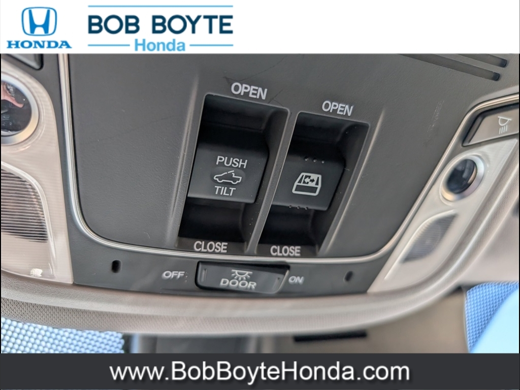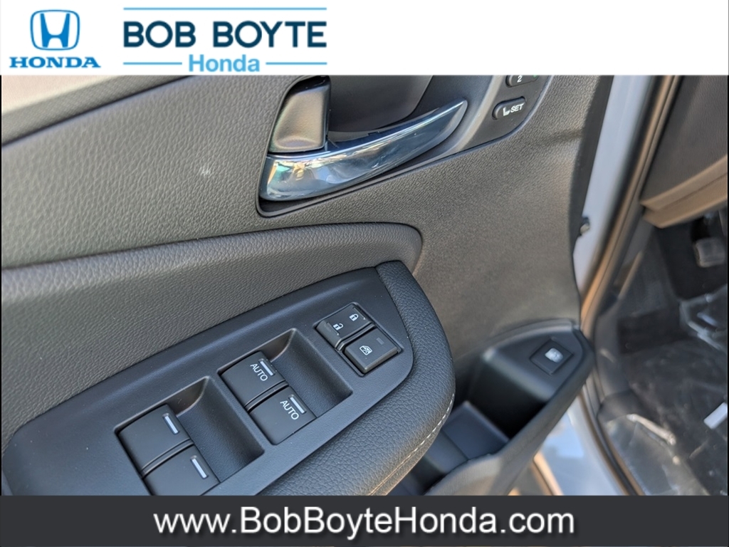 Dual front airbags, front seat mounted side-impact airbags, dual head curtain side-impact airbags with rollover sensor, four-wheel disc brakes with anti-lock, brake assist, electronic brake distribution, vehicle stability assist, traction control, hill start assist, rearview camera, daytime running lights, remote keyless entry, security system, push button engine start, Bluetooth hands free phone system, and tire pressure monitoring system with Tire Fill Assist and location/pressure indicators. RTS adds smart entry system, remote engine start, fog lights, and HomeLink remote system. RTL-T adds LED daytime running lights, Honda LaneWatch, HondaLink, and navigation system. RTL-E adds lane keeping assist system, adaptive cruise control, LED headlights with automatic high beam, blind spot information system with cross traffic monitor, collision mitigation braking system, forward collision warning, lane departure warning, road departure mitigation, and parking sensors.