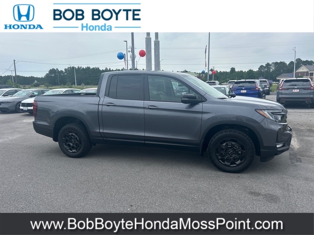 Price includes: $1500 - 2025 Ridgeline Sales Credit. Exp. 06/02/2025 2025 Honda Ridgeline TrailSport Modern Steel Metallic AWD 3.5L V6 SOHC i-VTEC 24V 9-Speed Automatic Bring Us All Offers On This Vehicle, New Honda Dealer Serving Gulfport-Biloxi, Nh-797m/Black Leather, 7 Speakers, Alloy wheels, AM/FM radio: SiriusXM, Blind Spot Information (BSI) System warning, Bluetooth� Hands-Free Link, Brake assist, Electronic Stability Control, Exterior Parking Camera Rear, Front fog lights, Honda Satellite-Linked Navigation System, Illuminated entry, Navigation system: Honda Satellite-Linked Navigation System, Panic alarm, Power moonroof, Radio data system, Radio: 215-Watt Audio System w/7 Speakers, Security system, SiriusXM, Speed control, Wheels: 18HPD Black Alloy. Bob Boyte Honda Moss Point is a brand new Gulf Coast Honda Dealership serving residents of Biloxi, Gulfport, DIberville, Pascagoula, MS and Mobile, AL. Get a custom no obligation Internet price quote on this vehicle in minutes here: https://www.bobboytehondamosspoint.com/quickquote/index.htm We sell new Honda cars, SUVs, vans and trucks at low prices our Mississippi Gulf Coast customers can afford. Our Honda Auto Finance Staff works with all credit types from good to bad to try to get approved financing. They believe they can get an approval for everyone! Get Pre-Approved in minutes here: https://www.bobboytehondamosspoint.com/get-pre-qualified.html Call Bob Boyte Honda Moss Point today at 228-202-0200 for immediate help.