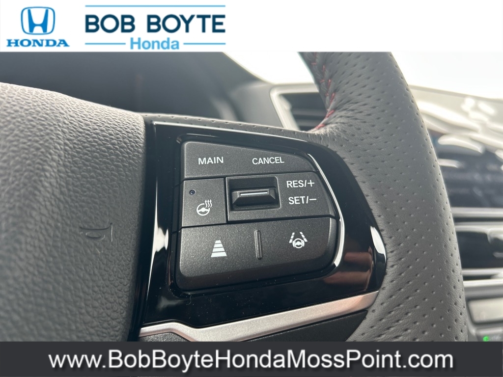 Dual front airbags, front seat mounted side-impact airbags, dual head curtain side-impact airbags with rollover sensor, four-wheel disc brakes with anti-lock, brake assist, electronic brake distribution, vehicle stability assist, traction control, hill start assist, rearview camera, daytime running lights, remote keyless entry, security system, push button engine start, Bluetooth hands free phone system, and tire pressure monitoring system with Tire Fill Assist and location/pressure indicators. RTS adds smart entry system, remote engine start, fog lights, and HomeLink remote system. RTL-T adds LED daytime running lights, Honda LaneWatch, HondaLink, and navigation system. RTL-E adds lane keeping assist system, adaptive cruise control, LED headlights with automatic high beam, blind spot information system with cross traffic monitor, collision mitigation braking system, forward collision warning, lane departure warning, road departure mitigation, and parking sensors.