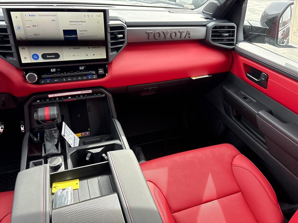 Nav System, Moonroof, Heated/Cooled Seats, Panoramic Roof, 4x4, Turbo Charged Engine, Aluminum Wheels, Hitch, Back-Up Camera. TRD Pro Hybrid trim, Midnight Black Metallic exterior and Cockpit Red interior. KEY FEATURES INCLUDENavigation, Sunroof, Panoramic Roof, 4x4, Heated Driver Seat, Cooled Driver Seat, Back-Up Camera, Turbocharged, Hybrid, Premium Sound System. MP3 Player, Privacy Glass, Keyless Entry, Steering Wheel Controls. Toyota TRD Pro Hybrid with Midnight Black Metallic exterior and Cockpit Red interior features a V6 Cylinder Engine with 437 HP at 5200 RPM*. Horsepower calculations based on trim engine configuration. Please confirm the accuracy of the included equipment by calling us prior to purchase.