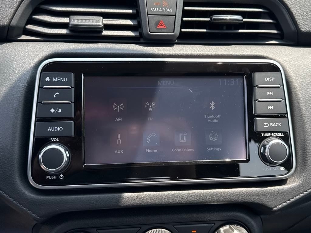 2025 Nissan Versa Super Black Metallic 1.6L I4 DOHC 16V W/ Blind Spot Warning & Apple Carplay 1.6 S Check out all these great options Trunk Package (Shopping Bag Hooks and Trunk Net), 15Steel Wheels w/Full Wheel Covers, 4 Speakers, ABS brakes, Air Conditioning, AM/FM radio, Auto High-beam Headlights, Brake assist, Bumpers: body-color, Carpeted Floor Mats, Cloth Seat Trim, Delay-off headlights, Driver door bin, Driver vanity mirror, Dual front impact airbags, Dual front side impact airbags, Electronic Stability Control, Front anti-roll bar, Front Bucket Seats, Front reading lights, Front wheel independent suspension, Fully automatic headlights, Illuminated entry, Knee airbag, Low tire pressure warning, Occupant sensing airbag, Outside temperature display, Overhead airbag, Panic alarm, Passenger door bin, Passenger vanity mirror, Power door mirrors, Power steering, Power windows, Radio data system, Radio: AM/FM Audio System, Rear Parking Sensors, Rear side impact airbag, Rear window defroster, Speed control, Splash Guards, Steering wheel mounted audio controls, Tachometer, Telescoping steering wheel, Tilt steering wheel, Traction control, Trip computer, USB Charging Cable Set, and Variably intermittent wipers.