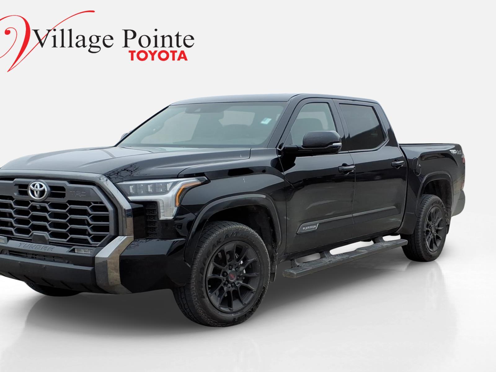 Conquer the Road with the 2025 Toyota Tundra Platinum: Power, Precision, and Unmatched Comfort for the Adventurous Driver Experience the ultimate in rugged sophistication with the 2025 Toyota Tundra Platinum. This used powerhouse, cloaked in Midnight Black Metallic, combines robust performance with luxurious comfort, making it the perfect choice for those who demand more from their drive. Under the hood, the turbocharged 3.4L V6 engine paired with a 10-speed automatic transmission delivers seamless power and efficiency, ensuring you’re ready for any terrain. The Tundra’s four-wheel drive and brake-actuated limited slip differential provide exceptional control and stability, whether you're navigating city streets or off-road trails. Inside, the Tundra Platinum offers a sanctuary of comfort and technology. Enjoy the convenience of a navigation system and smart device integration, while the adaptive cruise control and lane-keeping assist enhance your driving experience. Safety is paramount, with features like front collision mitigation and a comprehensive airbag system ensuring peace of mind on every journey. The spacious Crewmax cabin, complete with power-adjustable bucket seats and a rear bench seat, caters to both driver and passengers, making long trips a pleasure. The 2025 Toyota Tundra Platinum is not just a truck; it’s a statement of strength and style for those who live life on their terms. Be sure to call or visit Village Pointe Toyota to discover more. Your new favorite vehicle awaits - dont let someone else drive it home!‌