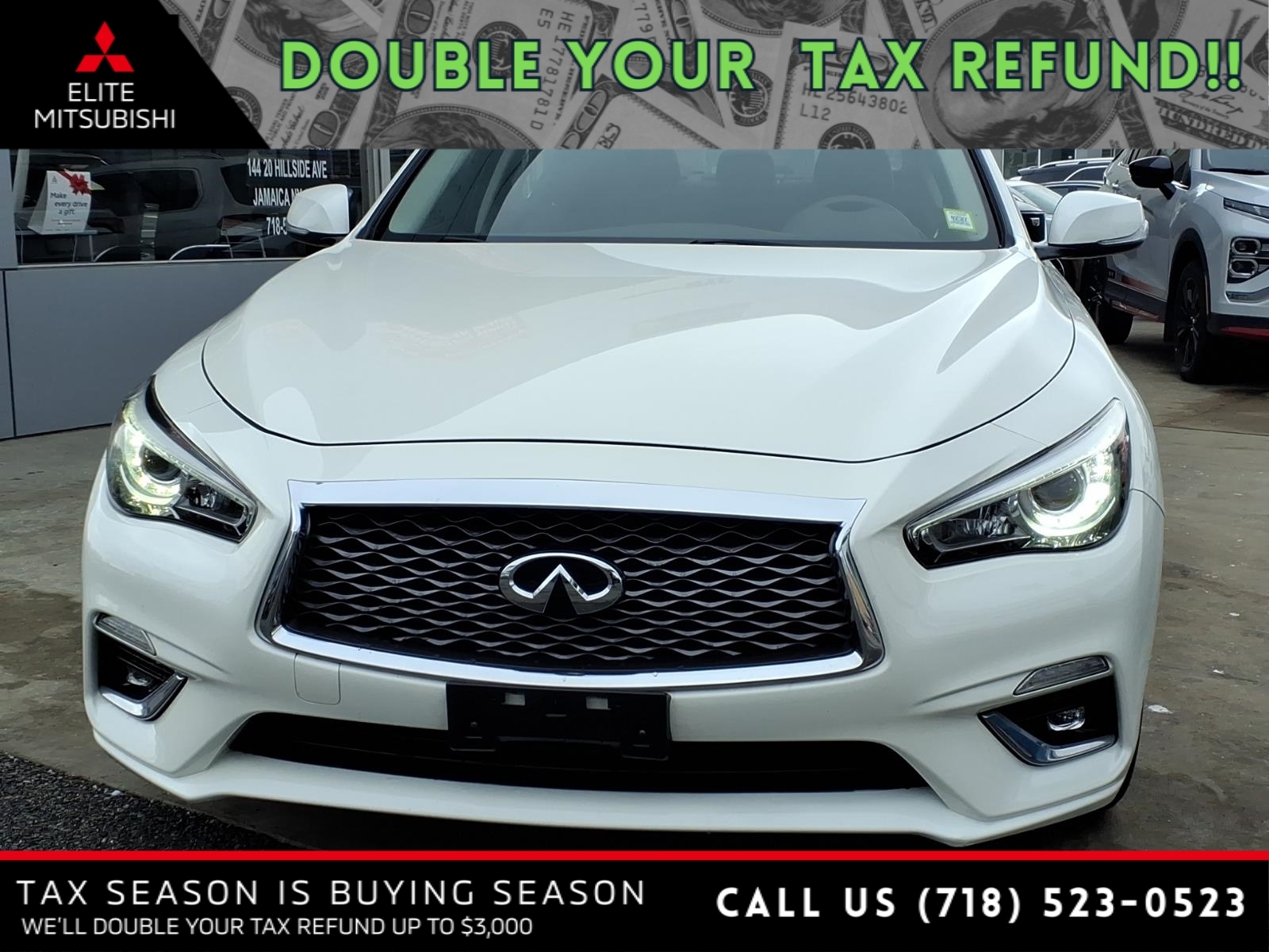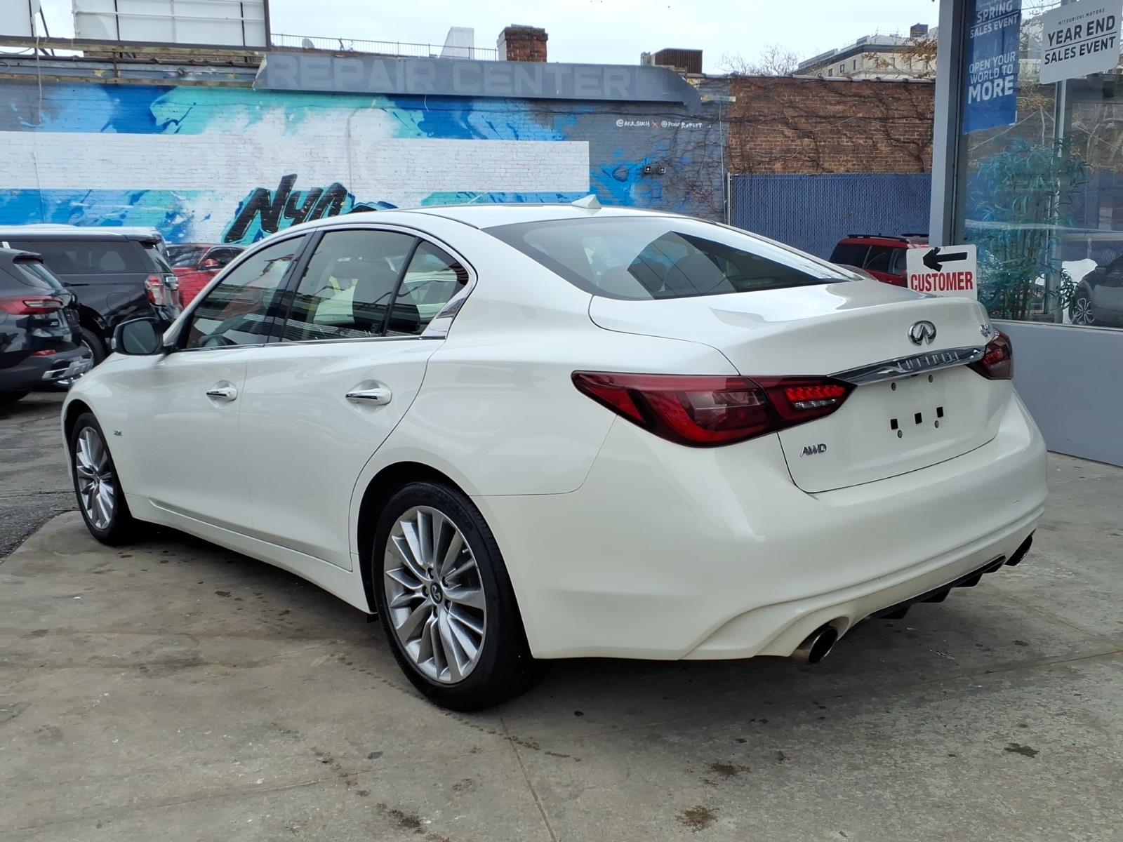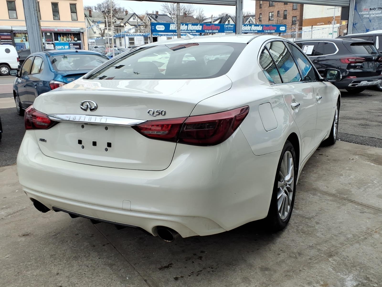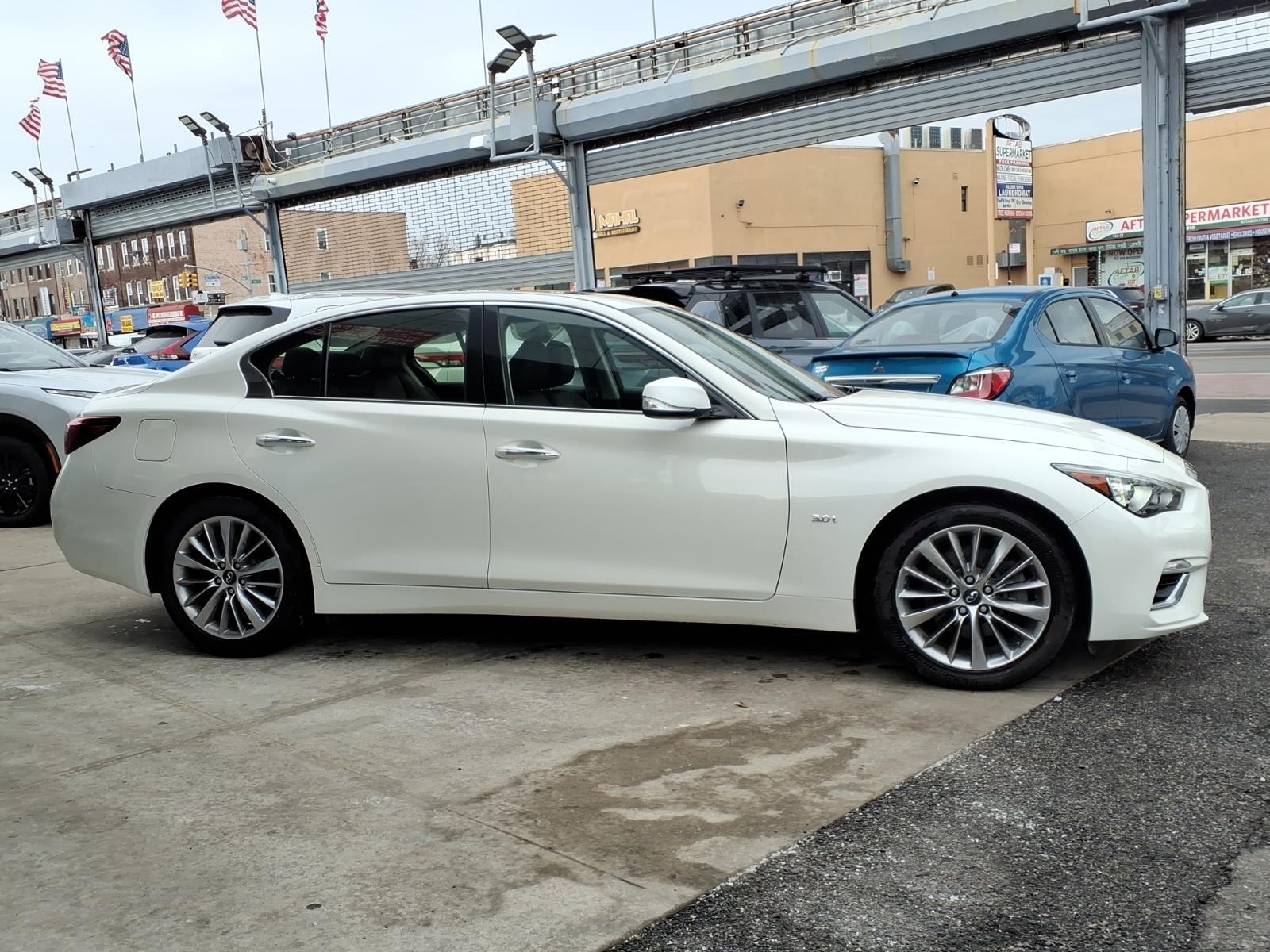 Majestic White 2018 INFINITI Q50 3.0t LUXE AWD 7-Speed Automatic with Manual Shift 3.0L V6 All pricing and details are believed to be accurate. We do not guarantee such accuracy. The prices presented may vary, as well as incentives, and are subject to change. All cars are sold cosmetically As-Is. The Retail price is the actual price with potential savings based on tax savings on estimated trade allocations and finance specials. Vehicle information is based on standard equipment and may vary from vehicle to vehicle. Contact us for complete vehicle specific information. Price does not include tax, tag and title. Prices can be modified and adjusted weekly, daily and sometimes hourly due to inquiries, bidding and website traffic on any vehicles. All displayed inventory is subject to prior sale, and all prices expire at midnight on the date displayed. Every reasonable effort has been made to ensure the accuracy of the information contained on this site; however absolute accuracy cannot be guaranteed. Please verify any information in question with the dealership sales manager. This is easily done by calling us at 718-523-0523 or by visiting us at the dealership. Recent Arrival! Odometer is 27008 miles below market average! 19/27 City/Highway MPG Awards: * 2018 KBB.com 10 Best Luxury Cars Under $35,000