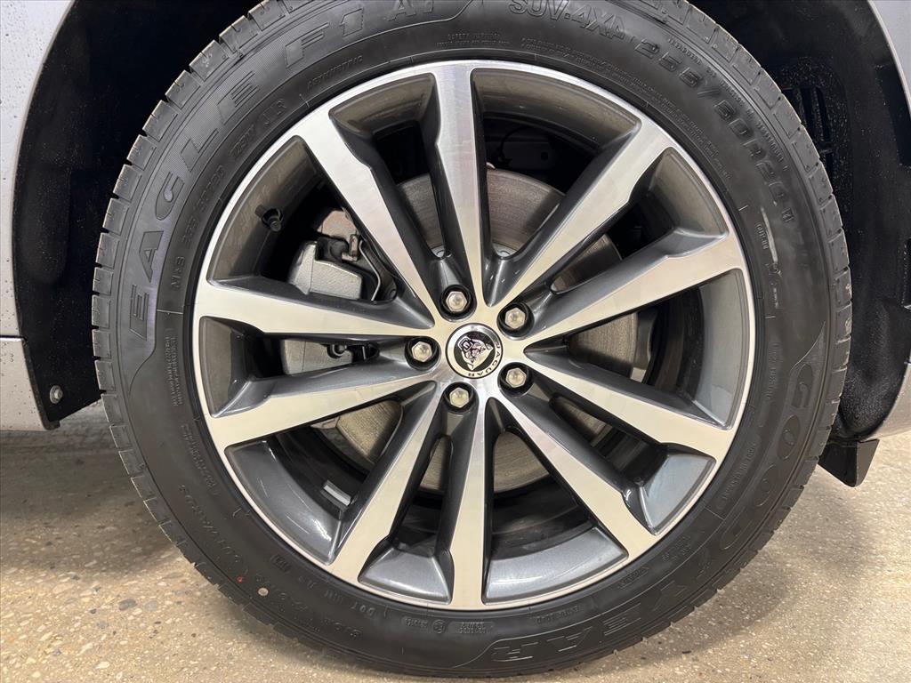 Dual front airbags, front seat-mounted side-impact airbags, dual front/rear head curtain airbags, four-wheel disc brakes with anti-lock, torque vectoring by braking, dynamic stability control, traction control, roll stability control, adaptive surface response intelligent dynamic driveline, emergency brake assist, cruise control with automatic speed limiter, hill launch assist, trailer stability assist, rain sensing windshield wipers, automatic headlamps, Bluetooth hands free phone system, perimeter alarm, engine immobilizer, Jaguar Smart Key system with keyless start, and tire pressure monitoring system. Premium adds HomeLink garage door opener, and rear view camera. Prestige adds Xenon high intensity discharge (HID) headlamps, LED daytime running lights, navigation system, front/rear parking aids, and keyless entry. R-Sport adds automatic LED adaptive headlights with intelligent high beams, lane keep assist, driver fatigue alert, blind spot monitor with closing vehicle sensing, reverse traffic detection, autonomous emergency braking with pedestrian detection, and front fog lamps. First Edition adds park assist, surround camera system, heads-up display, traffic sign recognition, adaptive speed limiter, and adaptive cruise control with queue assist.