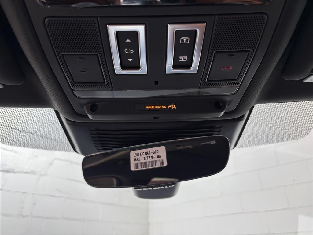 Dual front airbags, front seat-mounted side-impact airbags, dual front/rear head curtain airbags, four-wheel disc brakes with anti-lock, torque vectoring by braking, dynamic stability control, traction control, roll stability control, adaptive surface response intelligent dynamic driveline, emergency brake assist, cruise control with automatic speed limiter, hill launch assist, trailer stability assist, rain sensing windshield wipers, automatic headlamps, Bluetooth hands free phone system, perimeter alarm, engine immobilizer, Jaguar Smart Key system with keyless start, and tire pressure monitoring system. Premium adds HomeLink garage door opener, and rear view camera. Prestige adds Xenon high intensity discharge (HID) headlamps, LED daytime running lights, navigation system, front/rear parking aids, and keyless entry. R-Sport adds automatic LED adaptive headlights with intelligent high beams, lane keep assist, driver fatigue alert, blind spot monitor with closing vehicle sensing, reverse traffic detection, autonomous emergency braking with pedestrian detection, and front fog lamps. First Edition adds park assist, surround camera system, heads-up display, traffic sign recognition, adaptive speed limiter, and adaptive cruise control with queue assist.