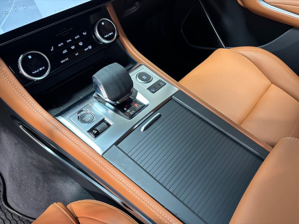 Inside the passenger compartment, the 'Sports Command' driving position provides authoritative, confidence-inspiring outward visibility, while retaining the Jaguar-specific sports car feel; the dramatic curve of the front door top is incorporated into the dash fascia enhancing the cockpit-like feel. The vehicle's available leather sports seats are shaped to provide exceptional comfort and support; they are available with 14 different adjustments plus heating and cooling functions. A range of contemporary trim options are also available, including authentic metal finishes such as Meshed Aluminum and beautiful crafted veneers such as Satin Grey Ash.