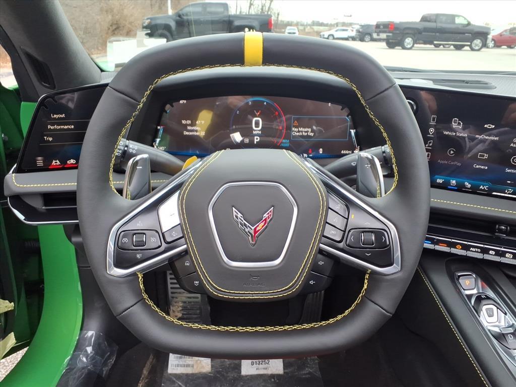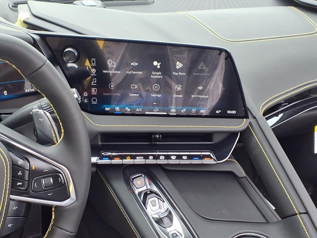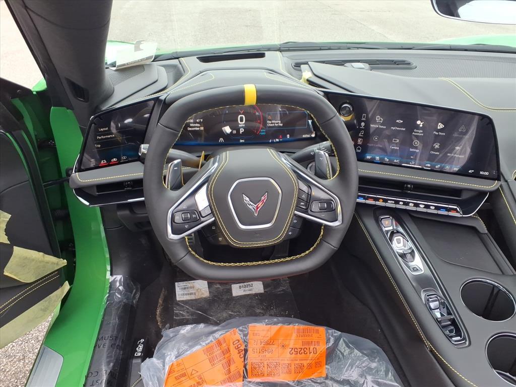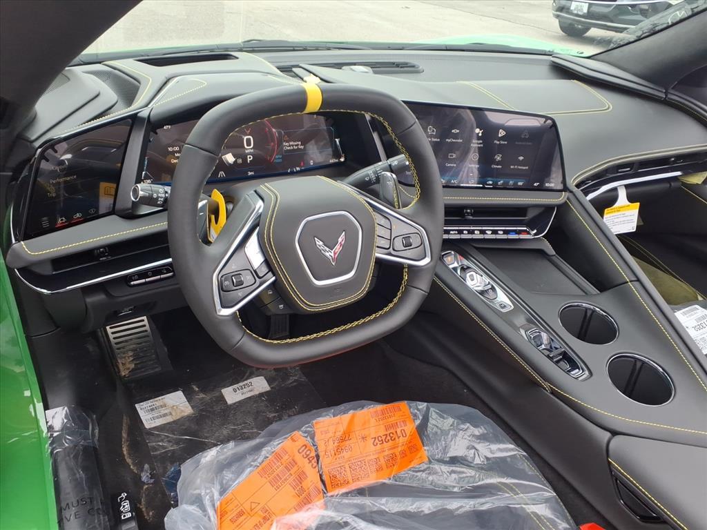 Demo/CTP units may have more mileage than a normal new retail unit. Contoured Liner Protection Package (All-Weather Floor Liners with Jake Logo and Contoured Cargo Area Liners with Jake Logo), Convertible Engine Appearance Package (Black LT2 Engine Cover and Engine Specification Plaque), Custom Leather Wrapped Interior Package, Memory Driver and Passenger Convenience Package, Stealth Interior Trim Package, Stingray Protection Package (Black Composite Rocker Extensions, Black Custom Splash Guards, and Front Radiator Grille Screens), Sueded Microfiber-Wrapped Upper Interior Trim Package, Z51 Performance Package (Electronic Limited-Slip Differential, Heavy-Duty Cooling System, Performance Exhaust with Stainless-Steel Tips, Performance Rear Axle Ratio, Rear Z51 Spoiler, Z51 Performance Brakes, and Z51 Performance Suspension), 14 Speakers, 2 Cargo Nets, 4-Wheel Disc Brakes, 8-Way Power Driver Seat Adjuster, 8-Way Power Passenger Seat Adjuster, ABS brakes, Air Conditioning, Alloy wheels, AM/FM radio: SiriusXM, Auto High-beam Headlights, Auto-dimming door mirrors, Auto-dimming Rear-View mirror, Automatic Leveling System Headlamp Control, Automatic temperature control, Black Lug Nuts, Black Premium Indoor Car Cover, Black Recovery Hook, Black Wheel Locks, Bose Performance Series Sound System with 14 Speakers, Brake assist, Bumpers: body-color, Compass, Competition Sport Bucket Seats, Competition Yellow Custom Leather Stitch, Convertible HardTop, Convertible roof lining, Convertible Top with Carbon Flash Nacelles and Roof, Dark Stealth Front Crossed Flags Emblem, Delay-off headlights, Driver door bin, Driver Power Bolster Seat Adjuster, Driver vanity mirror, Dual front impact airbags, Dual front side impact airbags, Electrical Theft Deterrent System, Electronic Stability Control, Emergency communication system: OnStar and Chevrolet connected services capable, Exterior Parking Camera Rear, Four wheel independent suspension, Front anti-roll bar, Front Bucket Seats, Front Center Armrest, Front dual zone A/C, Front Lift Adjustable Height with Memory, Front reading lights, Fully automatic headlights, Garage door transmitter, Glass rear window, GT2 Bucket Seats, HD Front and Rear Vision Cameras, Head-Up Display, Heads-Up Display, Heated and Vented Driver and Passenger Seats, Heated door mirrors, Heated front seats, Heated Steering Wheel, Heated steering wheel, Illuminated entry, Integrated roll-over protection, Lane Departure Warning System, Leather Shift Knob, Leather s