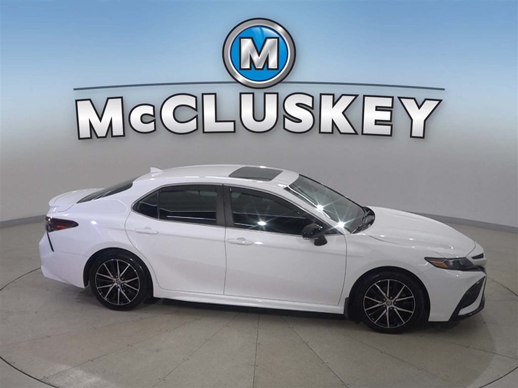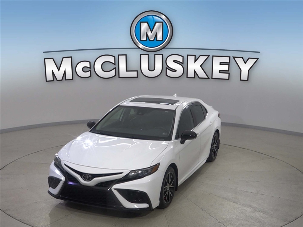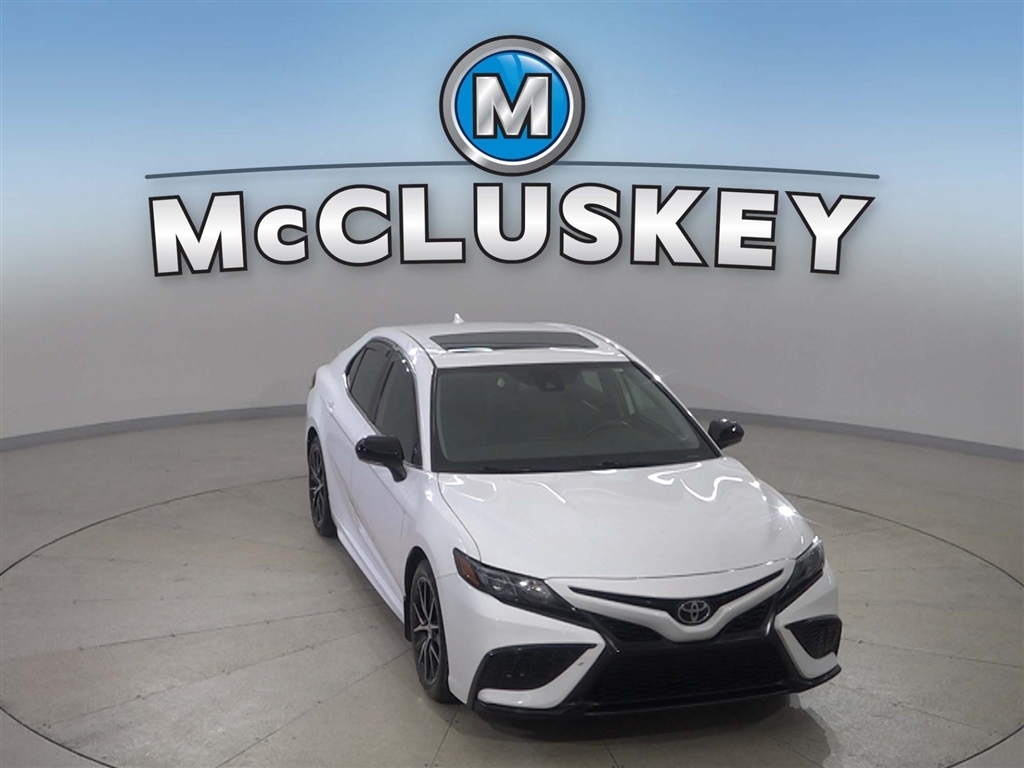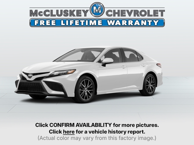 Call McCluskey Chevrolet at 513-741-1111 to schedule your Free 48 Hour Test Drive. MCCLUSKEY CHEVROLETS FREE LIFETIME MECHANICAL WARRANTY Unlimited Miles. Unlimited Years. Fully-Insured. Over 40 vehicles UNDER $10,000 with less than 100,000 miles---ALL with FREE LIFETIME MECHANICAL PROTECTION! Call 513-741-1111 to learn more. Super White 2021 Toyota Camry SE 2.5L I4 DOHC 16V Black Cloth.