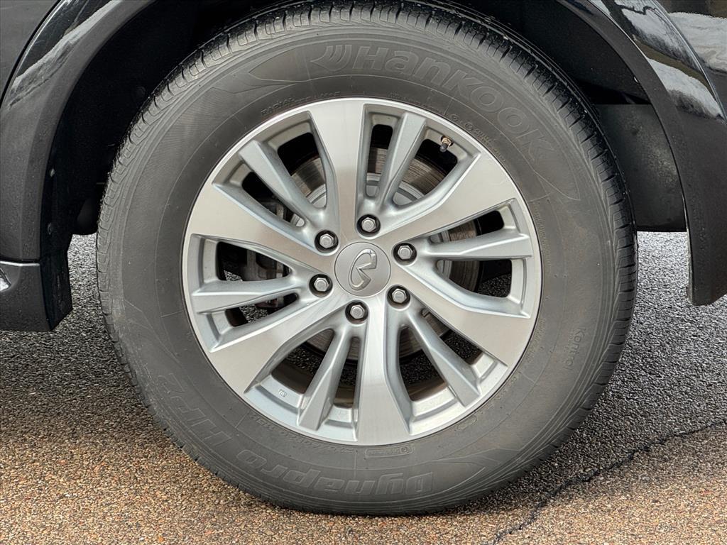 automatic LED headlamps with high beam assist, front LED fog lights, navigation system, Bluetooth hands-free phone system, Around View monitor with front/rear sonar system and moving object detection, rain-sensing variable intermittent windshield wipers, automatic power door locks, remote keyless entry, HomeLink universal transceiver, Infiniti Intelligent Key with illuminated push button ignition, tire pressure monitoring system with individual tire display and full-size spare tire.