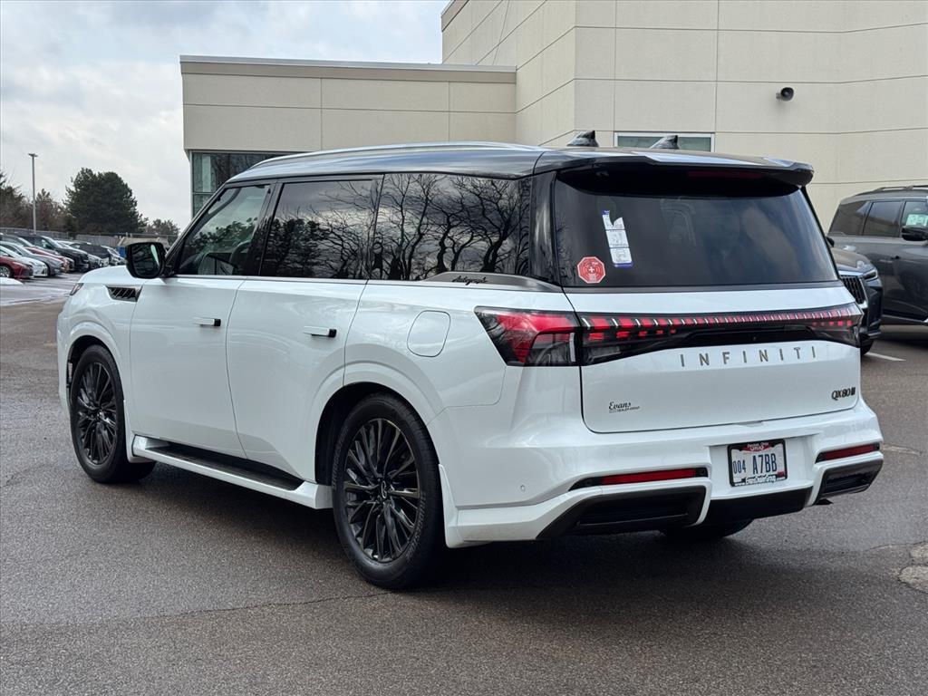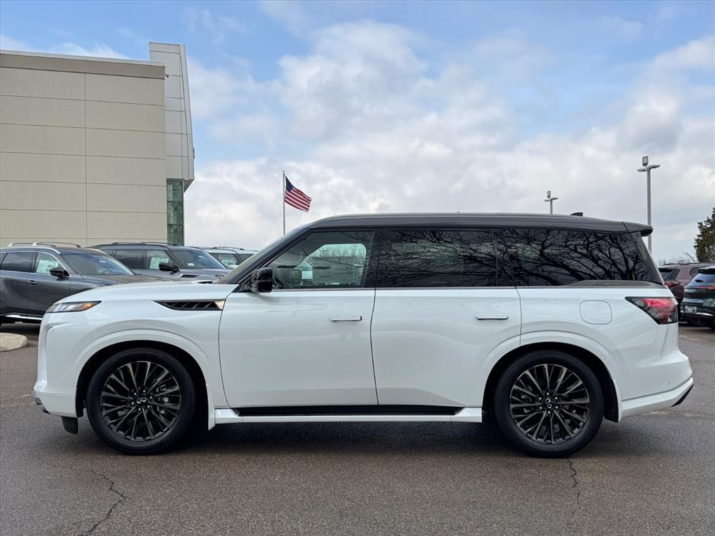 The QX80 rides on a high-stiffness frame structure that enhances ride comfort while reducing noise, vibration and harshness. The control hardware features an independent double-wishbone design front and rear, with Dual-Flow Path® twin tube shock absorbers and an automatic rear leveling system that seeks to maintain uniform ground clearance and departure angle, even when towing or carrying cargo, by automatically adjusting the air pressure in the system's air bladders.
