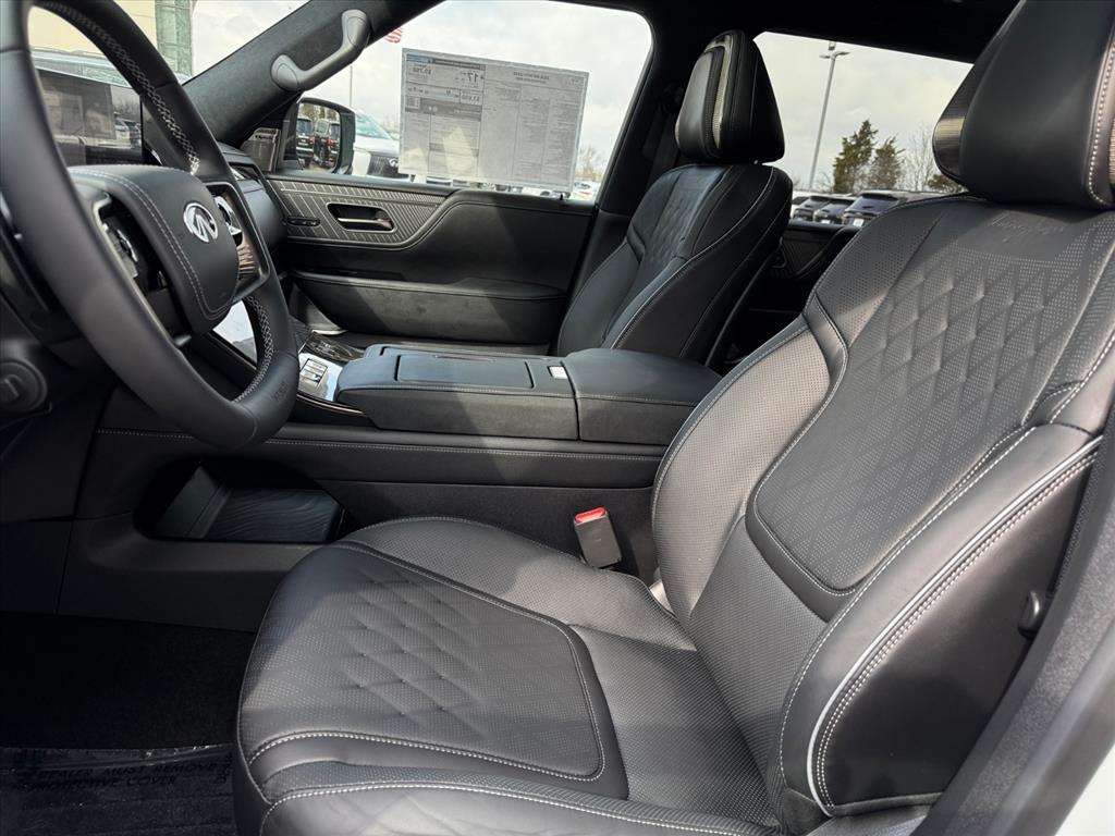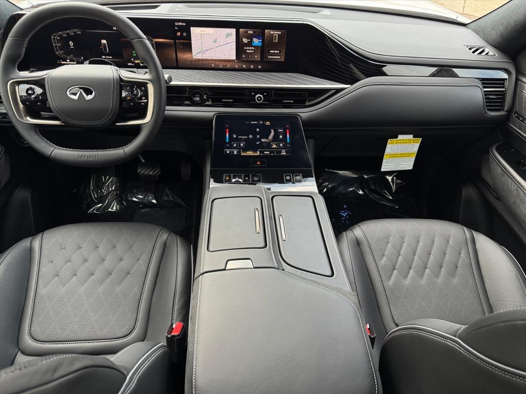 Inside the distinctive QX80 body is an interior long on luxury, including standard Infiniti Hard Drive Navigation System, Around View™ Monitor, Bose® 13-speaker Premium Audio System, available perforated semi-aniline leather seating and an available Tri-Zone Entertainment System with dual seven-inch color monitors, which allows different sources to be played at the same time. The QX80 also offers ample 1st row and class-leading 2nd row roominess.