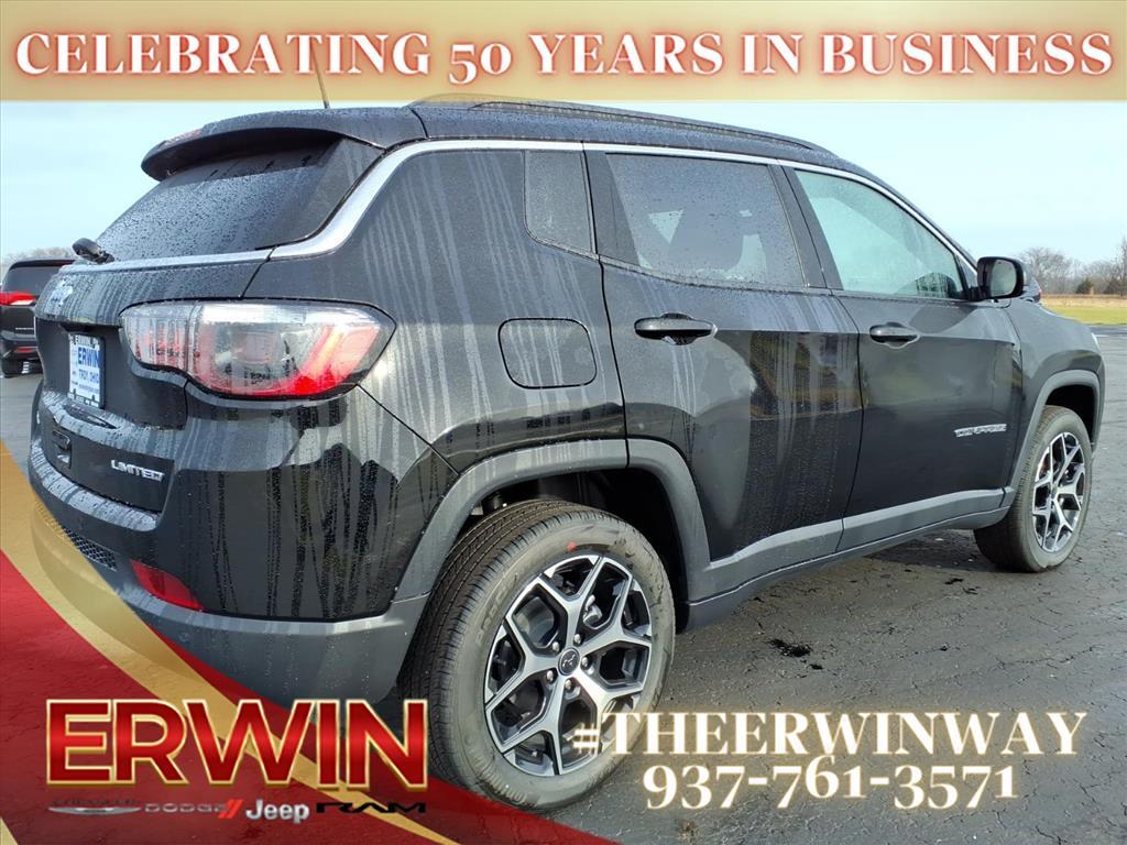 The 2026 Jeep Compass Limited is a state-of-the-art automobile that is sure to impress. Boasting a 2.0 liter 4 cylinder engine with turbocharging, this vehicle has a diamond black crystal exterior and a black interior. It has a crash test rating of 4 out of 5 stars and features such as touch screen display, Bluetooth audio connection, blind spot sensor, hill start assist, part time with on demand four wheel drive, Bluetooth phone connectivity, and leather seats. With all these features combined, this car is sure to be a reliable and safe option for any driver. Contact Details: Erwin Chrysler Dodge Jeep, 2775 S Co Rd. 25a, Troy, OH, 45373, pat@erwinchrysler.com, 9373355696.