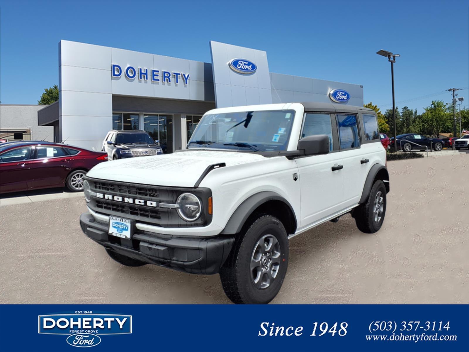Recent Arrival! **PRICE COMING SOON. WILL BE DOING A SUSPENSION LIFT, NEW WHEELS AND TIRES. STAY TUNED**, 2-Door Intelligent Access w/Lock/Unlock, Ambient Footwell Lighting, Connected Navigation, Dr Pass Illuminated Sliding Visor Vanity Mirrors, Dual Smart Charging USB Ports, Dual-Zone Electronic Automatic Temperature Control, Equipment Group 222A Mid Package, Front Row Heated Seats, Power Outlet - Back Side of Center Floor Console, Rear Parking Sensors. Oxford White 4WD 2.3L EcoBoost I-4 10-Speed Automatic Odometer is 792 miles below market average! Founded in 1948 by Bruce Doherty, Doherty Ford has been proud to serve Forest Grove and surrounding communities with passion and commitment to our customers for over 75 years. We pride ourselves on providing a no pressure collaborative informative experience with our customers. Whether servicing, repairing, or purchasing your vehicle we strive for the ultimate customer experience. Doherty Ford has been passed on to the 3rd family generation, this is in most part because of our loyal customers. Thank you! Please feel free to visit our interactive website at www.dohertyford.com or call us at 503-357-3114. Our interactive website allows you to calculate payments, view inventory, access vehicle videos, have your trade appraised, schedule service appointments, apply for financing and much more. We are a full- service dealer with a Body Shop, Parts Dept, Service Center, Quick Lane for oil changes, with DEQ Too testing. Since 1948! You can view all of our inventory at www.dohertyford.com. While you are there you can apply for financing or even have your trade in appraised. If you would like to speak to a sales consultant, please call (503) 357-3114. Doherty Ford... Since 1948!