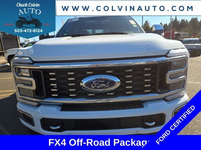 Commanding the Road in Unparalleled Luxury and Capability: Discover the 2024 Ford F-350SD PlatinumElevate your driving experience with the remarkable 2024 Ford F-350SD Platinum. This heavy-duty powerhouse combines exceptional performance, advanced technology, and uncompromising comfort to conquer any challenge with ease.• 5th Wheel/Gooseneck Hitch Prep Package• FX4 Off-Road Package• Navigation system: Connected Navigation (includes complimentary 1-year trial)• Off-Road Specifically Tuned Shock Absorbers• Twin Panel Power Moonroof• Hill Descent Control• Unique FX4 Off-Road Box DecalBeneath the striking Platinum exterior lies the legendary Power Stroke 6.7L V8 DI 32V OHV Turbodiesel engine, mated to a smooth-shifting 10-Speed Automatic transmission and a robust 4WD system. This commanding powertrain delivers unparalleled towing and hauling capabilities, making it the ultimate tool for your most demanding tasks.Elevate your driving experience with the 2024 Ford F-350SD Platinum's host of premium features. Indulge in the comfort of heated and ventilated front seats, a heated steering wheel, and a premium B&O Unleashed Sound System. Stay connected and informed with the SYNC 4 infotainment system and the intuitive Heads-Up Display. Tackle any terrain with confidence, thanks to the FX4 Off-Road Package and its specialized shock absorbers, hill descent control, and unique exterior accents.This Ford F-350SD Platinum is more than just a work truck – it's a true expression of refined power and uncompromising capability. With just 18,795 miles on the odometer, this certified pre-owned gem is ready to take you and your adventures to new heights.Ford Gold Certified Benefits:• 172 Point Inspection• Roadside Assistance• Warranty Deductible: $100• Transferable Warranty• Vehicle History• Limited Warranty: 12 Month/12,000 Mile (whichever comes first) after new car warranty expires or from certified purchase date• Powertrain Limited Warranty: 84 Month/100,000 Mile (whichever comes first) from original in-service date• 22,000 FordPass Rewards Points to use toward first two maintenance visitsSales Tax, Title, License Fee, Registration Fee, $250 Dealer Document Fee are additional to the listed price and may be added to the sale price or capitalized cost. All vehicles are subject to prior sale. Please contact the Sales Team to confirm the availability and pricing of all vehicles.