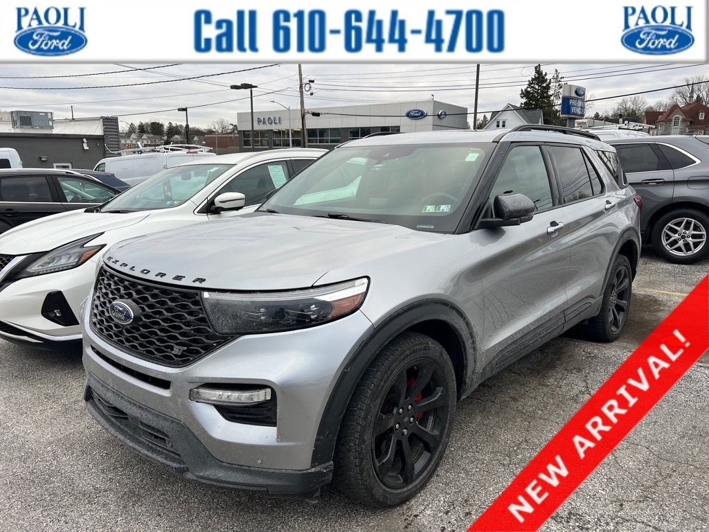 This 2021 Ford Explorer ST is a powerful and reliable SUV all wheel drive. It has an iconic silver (js) exterior and an ebony (c6) interior. It has driven 100,813 miles and is powered by an EcoBoost 3.0L Twin Turbo V6 400hp 415 lb-ft engine with twin turbo capabilities. It has an impressive fuel economy of 18 mpg in the city and 24 mpg on the highway, making it an efficient choice for your daily commutes. It also has a crash test rating of 5 out of 5 stars, making it a safe choice for your family's safety. Other features include blind spot sensor, hill start assist, and on demand four wheel drive for added convenience. This vehicle is sure to turn heads on the road! Thank you for considering Paoli Ford for your next new vehicle purchase! We strive to make your experience transparent and hassle free! Stop by today to see why the community has chosen us since 1921!