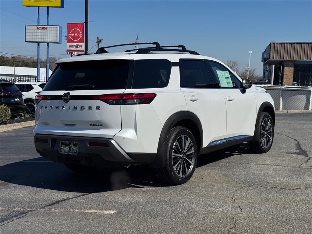 Factory MSRP: $53,390$4,650 off MSRP!Check out this New 2026 Nissan Pathfinder Platinum available at Benso Nissan of Easley in Easley, SC. Offered at just $48740, this Nissan Pathfinder won't last long. This FWD Nissan Pathfinder Platinum is powered by a 3.5L V6 DOHC an includes these features and benefits Cargo Package (Cargo Area Protector, Cargo Net, and First Aid), Platinum Captain Chairs Package (2nd-Row Captain Chairs and 2nd-Row Removable Centre Console), 13 Speakers, 3rd row seats: bench, 4-Piece Black Splash Guards, 4-Wheel Disc Brakes, ABS brakes, Air Conditioning, Alloy wheels, AM/FM radio: SiriusXM w/360L, Auto High-beam Headlights, Auto tilt-away steering wheel, Auto-dimming Rear-View mirror, Automatic temperature control, Bodyside moldings, Bose Premium Audio System, Brake assist, Bumpers: body-color, Captain's Chairs Carpeted Floor Mats, Climate Controlled Front Bucket Seats, Cross Bars, Delay-off headlights, Driver door bin, Driver vanity mirror, Dual front impact airbags, Dual front side impact airbags, Electronic Stability Control, Emergency communication system: NissanConnect Services, Four wheel independent suspension, Front anti-roll bar, Front Bucket Seats, Front Center Armrest, Front dual zone A/C, Front reading lights, Fully automatic headlights, Garage door transmitter: HomeLink, Heads-Up Display, Heated door mirrors, Heated front seats, Heated rear seats, Heated steering wheel, Illuminated entry, Knee airbag, Low tire pressure warning, Memory seat, NissanConnect featuring Apple CarPlay and Android Auto, Occupant sensing airbag, Outside temperature display, Overhead airbag, Overhead console, Panic alarm, Passenger door bin, Passenger vanity mirror, Power door mirrors, Power driver seat, Power Liftgate, Power moonroof, Power passenger seat, Power steering, Power windows, Radio data system, Radio: AM/FM Audio System with NissanConnect, Rain sensing wipers, Rear air conditioning, Rear anti-roll bar, Rear reading lights, Rear seat center armrest, Rear side impact airbag, Rear window defroster, Rear window wiper, Reclining 3rd row seat, Remote keyless entry, Security system, Semi-Aniline Leather-Appointed Seating Surfaces, Speed control, Speed-sensing steering, Speed-Sensitive Wipers, Split folding rear seat, Spoiler, Steering wheel memory, Steering wheel mounted audio controls, Tachometer, Telescoping steering wheel, Tilt steering wheel, Traction control, Trip comput Price includes: $2000 - Nissan Customer Cash. Exp. 03/02/