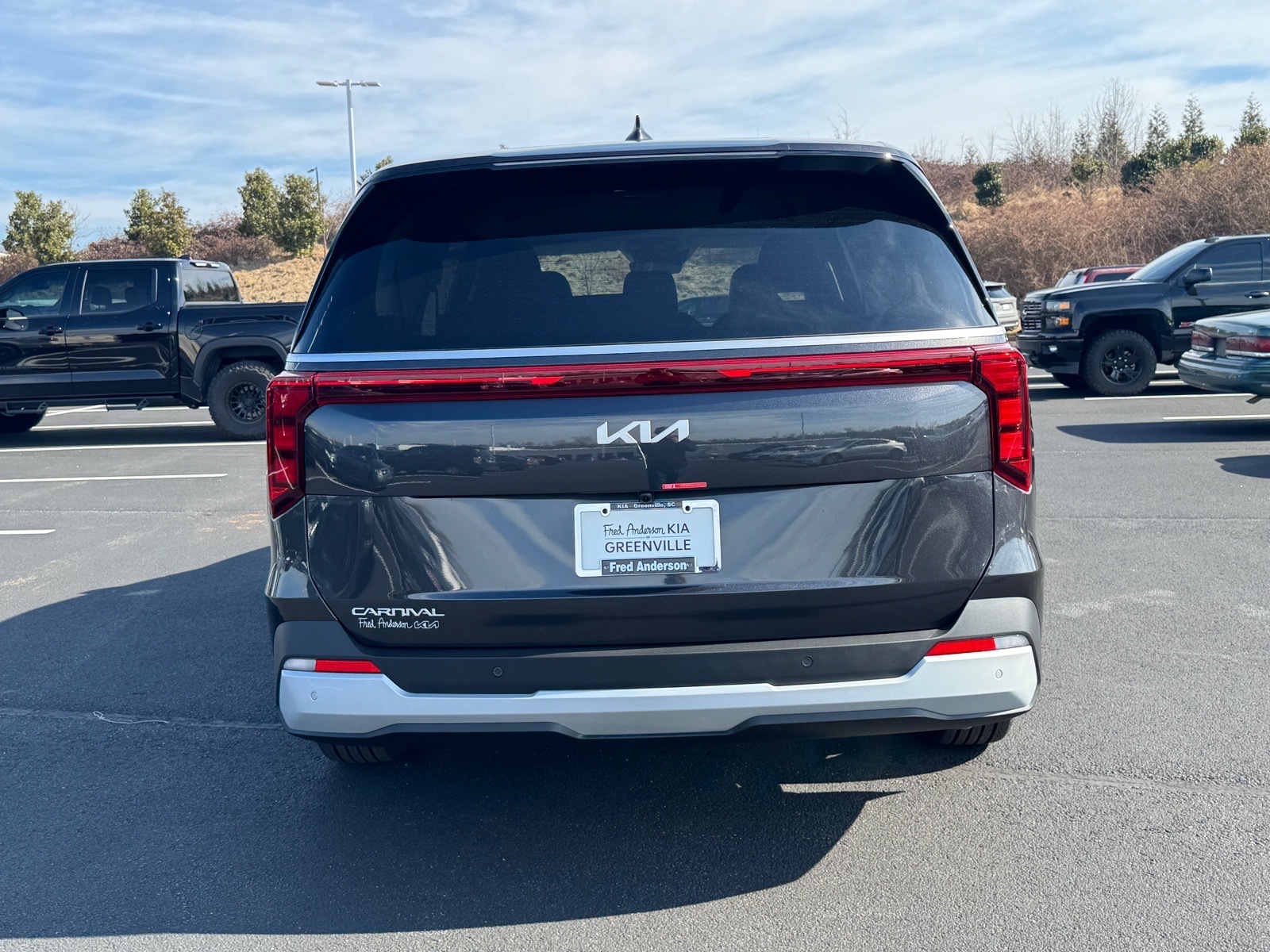 2026 Kia Carnival LXS Panthera Metal 3.51 Axle Ratio, 3rd row seats: split-bench, 4-Wheel Disc Brakes, 6 Speakers, 6.5J x 17Alloy Wheels, ABS brakes, Air Conditioning, Alloy wheels, AM/FM radio: SiriusXM, Apple CarPlay & Android Auto, Auto High-beam Headlights, Automatic temperature control, Brake assist, Bumpers: body-color, Cargo Mat, Cargo Net, Compass, Delay-off headlights, Driver door bin, Driver vanity mirror, Dual front impact airbags, Dual front side impact airbags, Electronic Stability Control, Emergency communication system, Exterior Parking Camera Rear, Four wheel independent suspension, Front anti-roll bar, Front Bucket Seats, Front Center Armrest, Front dual zone A/C, Front reading lights, Fully automatic headlights, Heated door mirrors, Illuminated entry, Knee airbag, Low tire pressure warning, Mud Guards, Navigation System, Occupant sensing airbag, Outside temperature display, Overhead airbag, Overhead console, Panic alarm, Passenger door bin, Passenger vanity mirror, Power door mirrors, Power steering, Power windows, Radio: AM/FM/HD Audio System, Rear air conditioning, Rear anti-roll bar, Rear reading lights, Rear window defroster, Rear window wiper, Reclining 3rd row seat, Remote keyless entry, Security system, Speed control, Speed-sensing steering, Split folding rear seat, Spoiler, Steering wheel mounted audio controls, Tachometer, Telescoping steering wheel, Tilt steering wheel, Traction control, Trip computer, Turn signal indicator mirrors, Variably intermittent wipers, Wheel Locks. 4D Passenger Van FWD 8-Speed Automatic V6 18/26 City/Highway MPG 18/26 City/Highway MPG Thank you for checking out our website at www.KiaOfGreenville.com where we help you find the best vehicle that meets your needs wrapped in a deal you will not want to walk away from. If you have any questions please call us at 864-412-4061 or visit us in person at Fred Anderson Kia of Greenville located at 2424 Laurens Rd Greenville, SC 29607 to learn more! Qualifying New Vehicles bought and serviced here receive our FULL ANDERSON FAMILY PLAN at NO COST to YOU! Our full family plan includes: Peace of Mind 3-Day Vehicle Exchange*Lifetime Oil Changes*Service Loaners*Loyalty Discounts after 50,000 miles All prices exclude tax, tag, license, title, and registration for your state; and our admin ($499) fees. All vehicle internet pricing is subject to change and requires standard financing. From time to time in the transfer of data on the internet, there are errors. Dealer i
