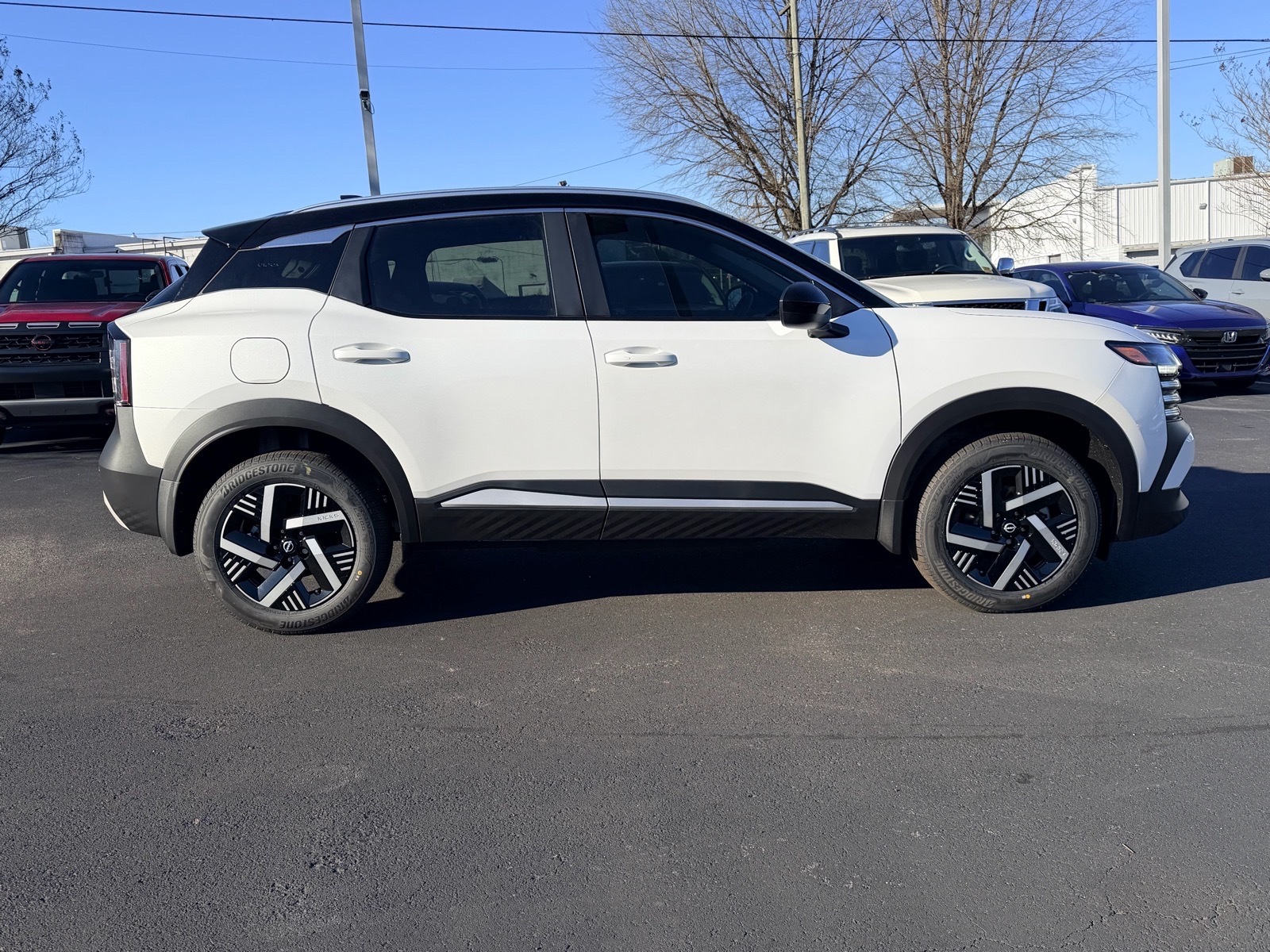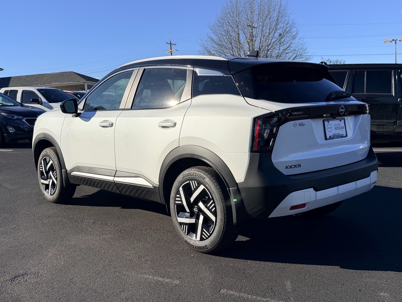This NEW 2026 Aspen White Tricoat/Super Black Nissan Kicks SV 2.0L DOHC CVT with Xtronic FWD is well equipped and includes these features and benefits: 2-Tone Premium Paint, 4 Speakers, 4-Wheel Disc Brakes, ABS brakes, Air Conditioning, AM/FM radio, Auto High-beam Headlights, Automatic temperature control, Blind Spot Warning, Brake assist, Bumpers: body-color, Carpeted Floor Mats & Underfloor Protector, Cloth Seat Trim, Driver door bin, Driver vanity mirror, Dual front impact airbags, Dual front side impact airbags, Electronic Stability Control, Emergency communication system, Exterior Parking Camera Rear, Front anti-roll bar, Front Bucket Seats, Front Center Armrest, Front reading lights, Front wheel independent suspension, Fully automatic headlights, Illuminated entry, Knee airbag, Low tire pressure warning, NissanConnect featuring Apple CarPlay and Android Auto, Occupant sensing airbag, Outside temperature display, Overhead airbag, Panic alarm, Passenger door bin, Passenger vanity mirror, Power door mirrors, Power steering, Power windows, Radio data system, Radio: AM/FM/SiriusXM Audio System, Rear anti-roll bar, Rear reading lights, Rear side impact airbag, Rear window defroster, Rear window wiper, Remote keyless entry, Security system, Speed control, Speed-sensing steering, Splash Guards, Split folding rear seat, Spoiler, Sport steering wheel, Steering wheel mounted audio controls, Tachometer, Telescoping steering wheel, Tilt steering wheel, Traction control, Trip computer, Variably intermittent wipers, Wheels: 17Steel Flex w/Full Covers. 28/35 City/Highway MPG Due to our amazing pricing, please call before coming down to ensure the vehicle is still available! Price includes: $1000 - Nissan Customer Cash. Exp. 03/02/2026