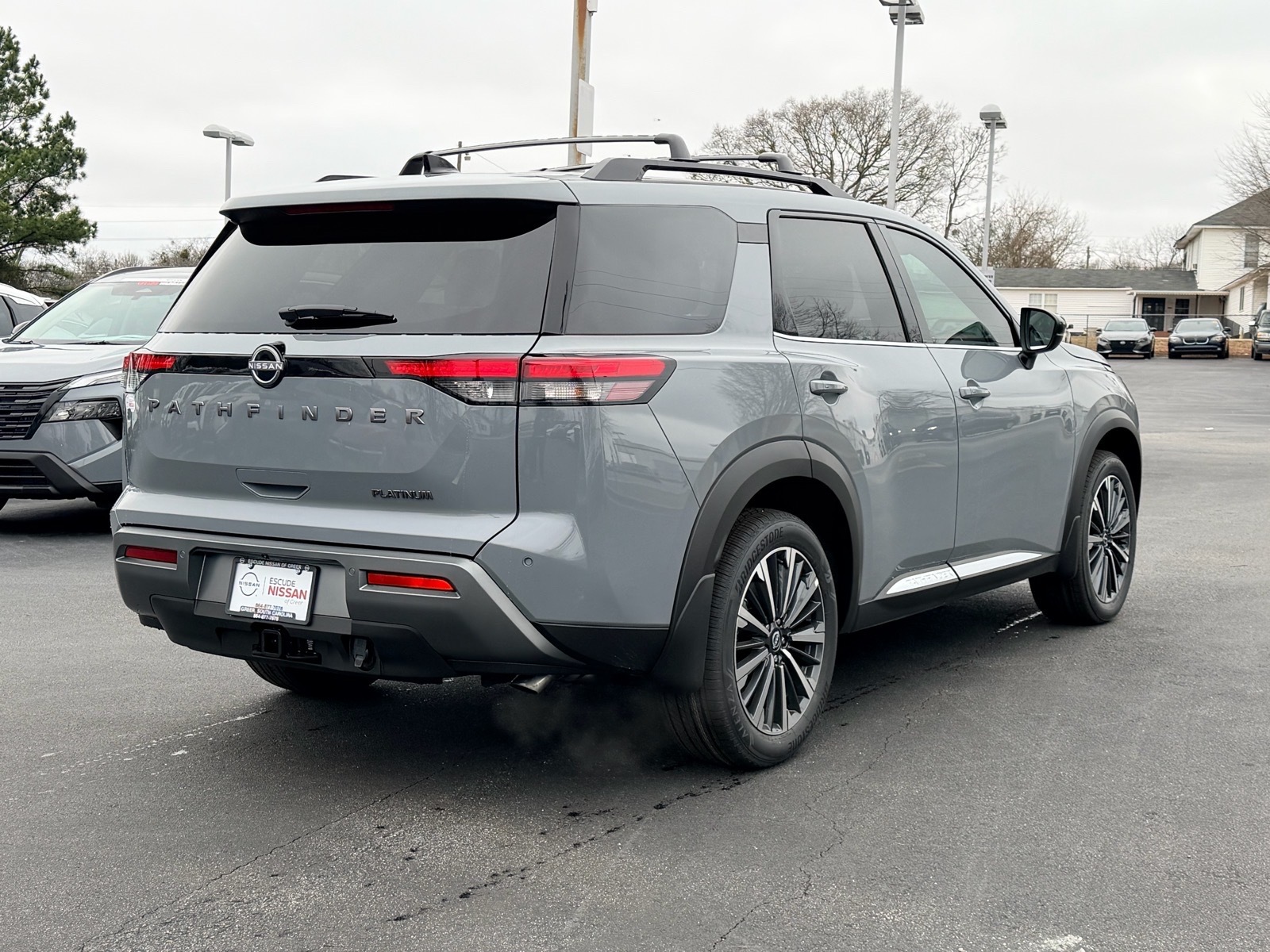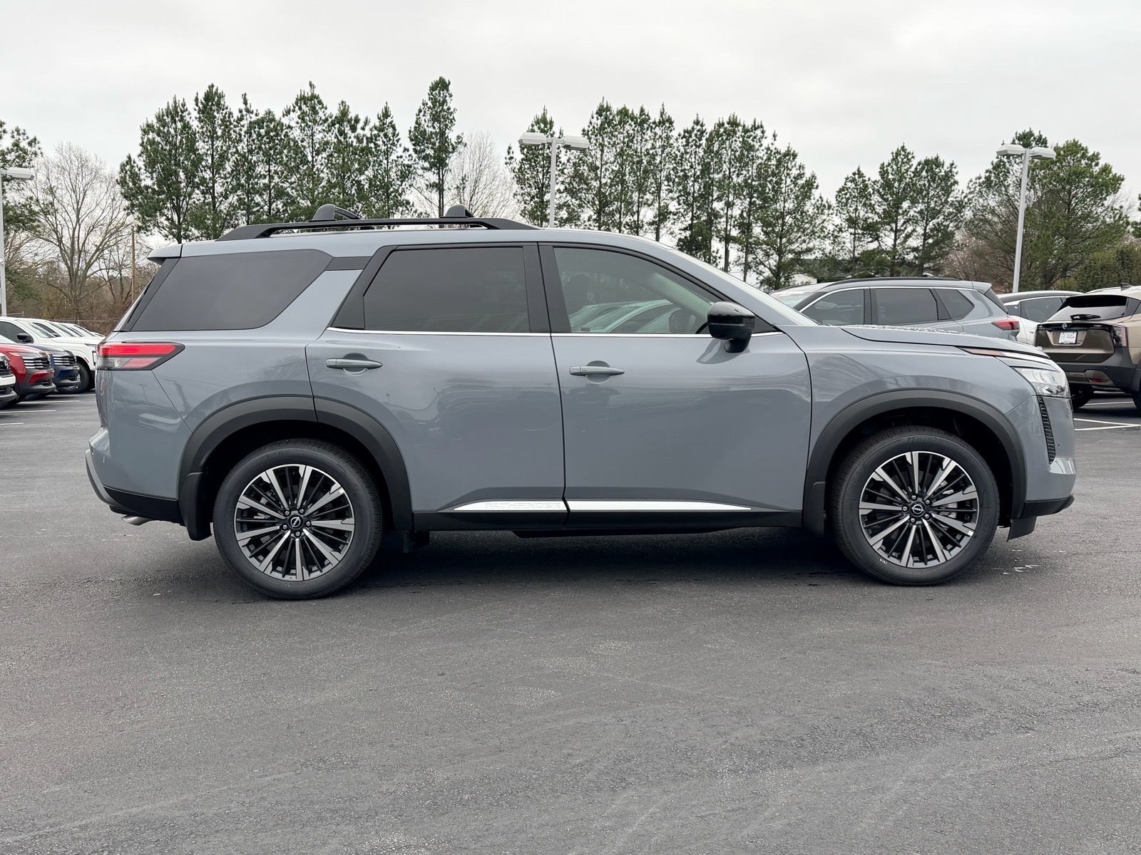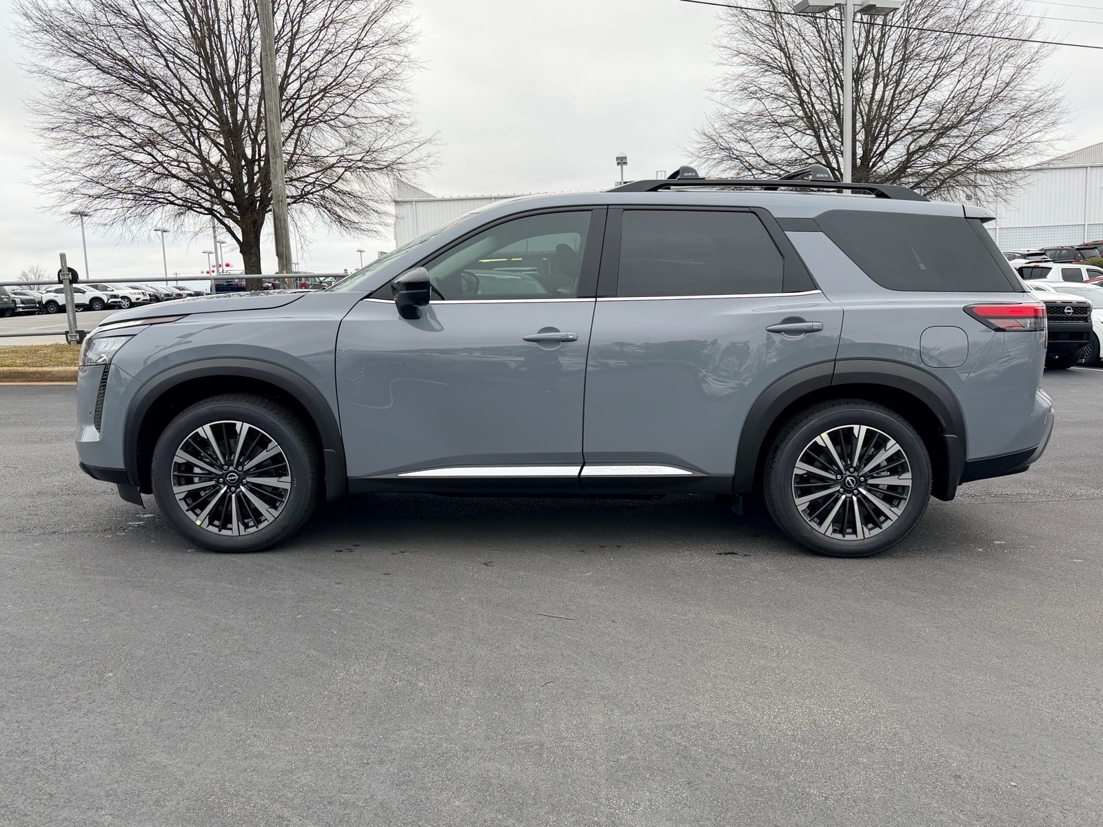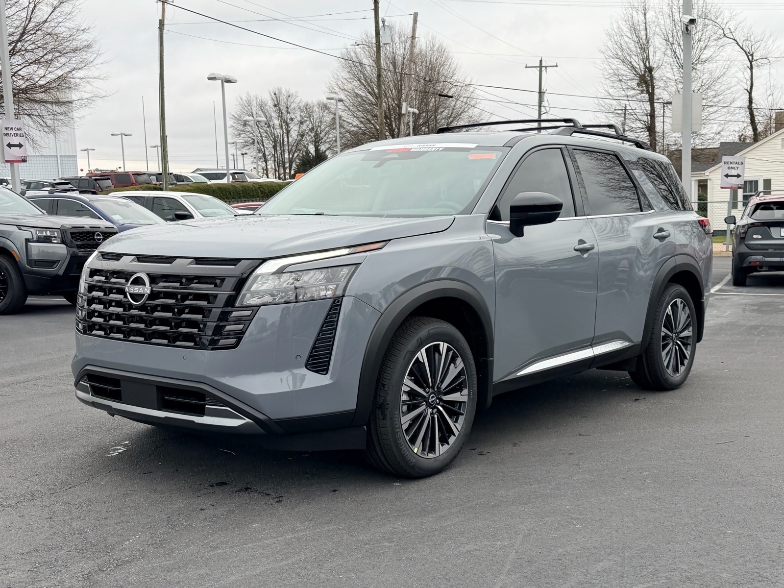 This NEW 2026 Boulder Gray Pearl Nissan Pathfinder Platinum 3.5L V6 DOHC 9-Speed Automatic FWD is well equipped and includes these features and benefits: 13 Speakers, 3rd row seats: bench, 4-Piece Black Splash Guards, 4-Wheel Disc Brakes, ABS brakes, Air Conditioning, Alloy wheels, AM/FM radio: SiriusXM w/360L, Auto High-beam Headlights, Auto tilt-away steering wheel, Auto-dimming Rear-View mirror, Automatic temperature control, Bench Seat Carpeted Floor Mats, Bodyside moldings, Bose Premium Audio System, Brake assist, Bumpers: body-color, Cargo Area Protector, Cargo Net, Cargo Package, Climate Controlled Front Bucket Seats, Cross Bars, Delay-off headlights, Driver door bin, Driver vanity mirror, Dual front impact airbags, Dual front side impact airbags, Electronic Stability Control, Emergency communication system: NissanConnect Services, First Aid, Four wheel independent suspension, Front anti-roll bar, Front Bucket Seats, Front Center Armrest, Front dual zone A/C, Front reading lights, Fully automatic headlights, Garage door transmitter: HomeLink, Heads-Up Display, Heated door mirrors, Heated front seats, Heated rear seats, Heated steering wheel, Illuminated entry, Knee airbag, Low tire pressure warning, Memory seat, NissanConnect featuring Apple CarPlay and Android Auto, Occupant sensing airbag, Outside temperature display, Overhead airbag, Overhead console, Panic alarm, Passenger door bin, Passenger vanity mirror, Power door mirrors, Power driver seat, Power Liftgate, Power moonroof, Power passenger seat, Power steering, Power windows, Premium Paint, Radio data system, Radio: AM/FM Audio System with NissanConnect, Rain sensing wipers, Rear air conditioning, Rear anti-roll bar, Rear reading lights, Rear seat center armrest, Rear side impact airbag, Rear window defroster, Rear window wiper, Reclining 3rd row seat, Remote keyless entry, Security system, Semi-Aniline Leather-Appointed Seating Surfaces, Speed control, Speed-sensing steering, Speed-Sensitive Wipers, Split folding rear seat, Spoiler, Steering wheel memory, Steering wheel mounted audio controls, Tachometer, Telescoping steering wheel, Tilt steering wheel, Traction control, Trip computer, Turn signal indicator mirrors, Variably intermittent wipers, Ventilated front seats, Wheels: 20Machined Alloy. 20/27 City/Highway MPG Due to our amazing pricing, please call before coming down to ensure the vehicle is still available! Price includes: $2000 - Nissan Customer Cash. Exp. 03/02/2026