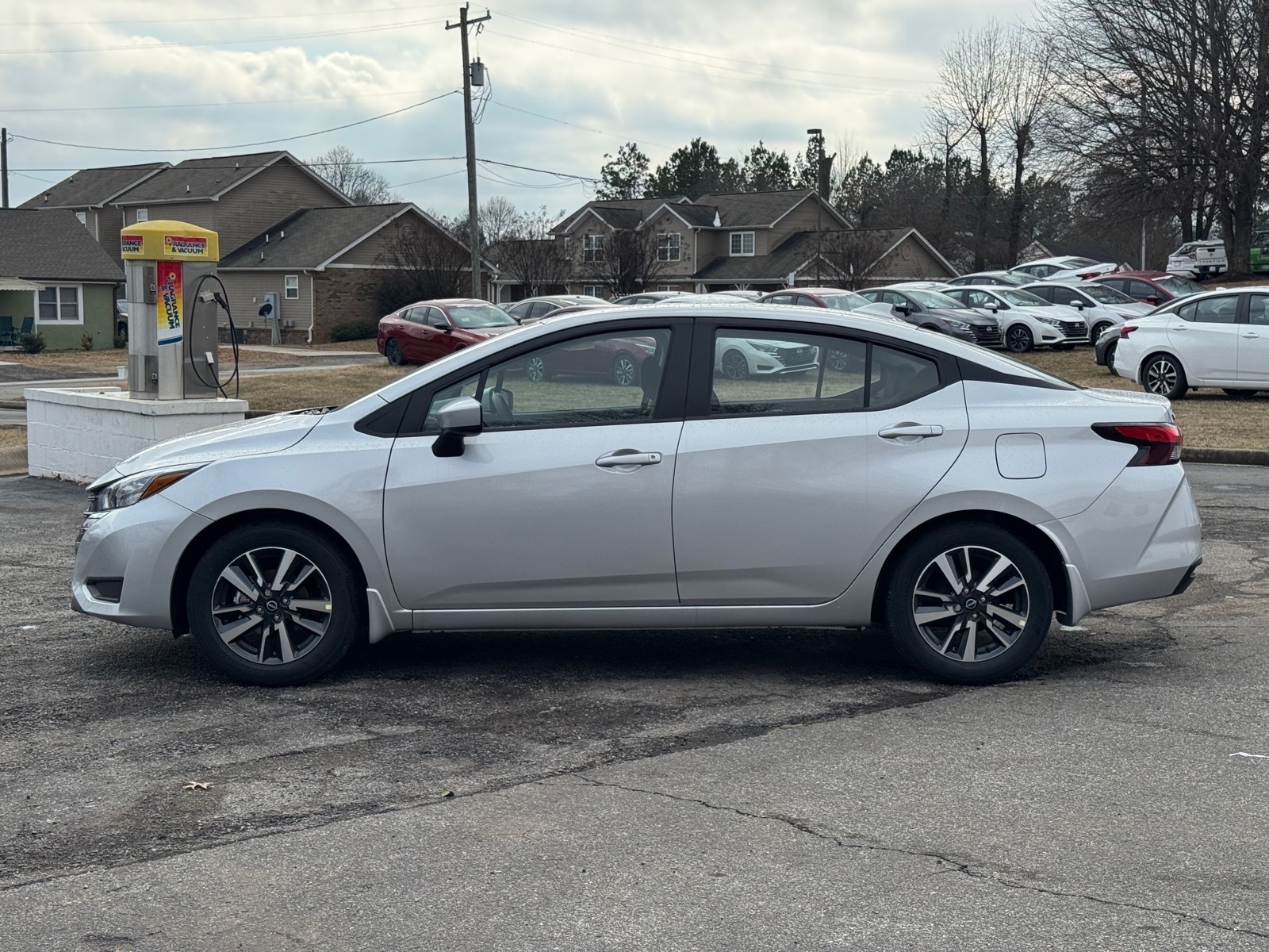 This NEW 2025 Brilliant Silver Metallic Nissan Versa 1.6 SV 1.6L I4 DOHC 16V CVT FWD is well equipped and includes these features and benefits: 16Aluminum Alloy Wheels, 4 Speakers, ABS brakes, Air Conditioning, Alloy wheels, Apple CarPlay/Android Auto, Auto High-beam Headlights, Blind Spot Warning, Brake assist, Bumpers: body-color, Carpeted Floor Mats & Trunk Mat (5-Piece Set), Delay-off headlights, Driver door bin, Driver vanity mirror, Dual front impact airbags, Dual front side impact airbags, Electronic Stability Control, Front anti-roll bar, Front Bucket Seats, Front Center Armrest, Front reading lights, Front wheel independent suspension, Fully automatic headlights, Heated door mirrors, Illuminated entry, Knee airbag, Low tire pressure warning, Occupant sensing airbag, Outside temperature display, Overhead airbag, Panic alarm, Passenger door bin, Passenger vanity mirror, Power door mirrors, Power steering, Power windows, Radio data system, Radio: AM/FM Audio System, Rear Parking Sensors, Rear side impact airbag, Rear window defroster, Remote keyless entry, Shopping Bag Hooks, Speed control, Splash Guards, Split folding rear seat, Steering wheel mounted audio controls, Tachometer, Telescoping steering wheel, Tilt steering wheel, Traction control, Trip computer, Trunk Net, Trunk Package, Upgraded Cloth Seat Trim, Variably intermittent wipers. 32/40 City/Highway MPG Due to our amazing pricing, please call before coming down to ensure the vehicle is still available! Price includes: $750 - Nissan MY25 Bonus Cash. Exp. 03/02/2026