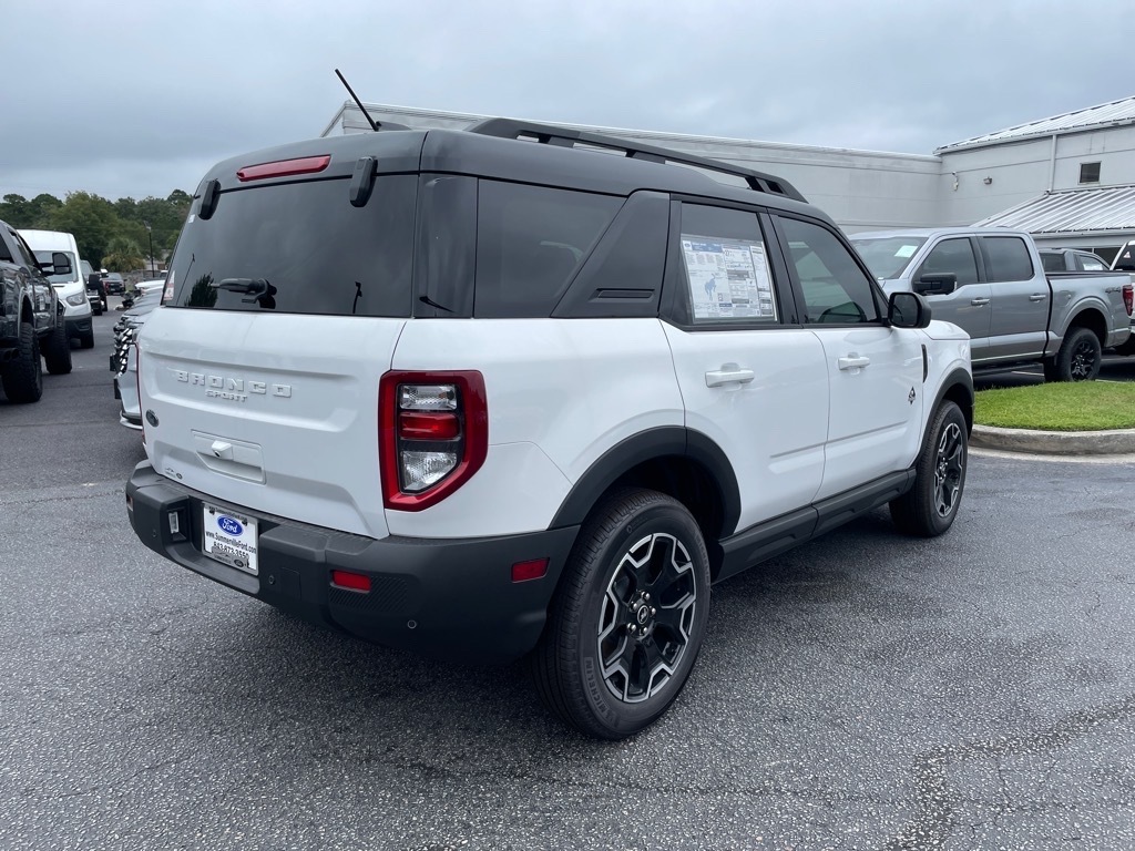Oxford White 2025 Ford Bronco Sport Outer Banks 4WD 8-Speed Automatic 1.5L EcoBoost 25/30 City/Highway MPG Price excludes tax, title, license and dealer added accessories. Price includes: $1000 - Bonus Cash. Exp. 03/31/2026 $2000 - Retail Customer Cash. Exp. 03/31/2026