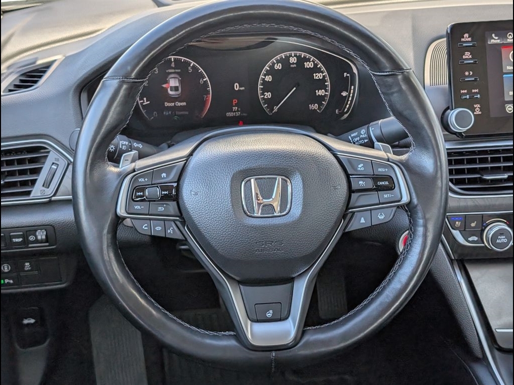 A more intricately contoured sport inspired steering wheel with deep-set thumb rests and available paddle shifters compliment the Accord's more sophisticated and sporty performance capabilities. Meticulous attention to the tactile and visual quality of surface materials and decorations communicates modernity and soft-spoken elegance throughout the cabin.