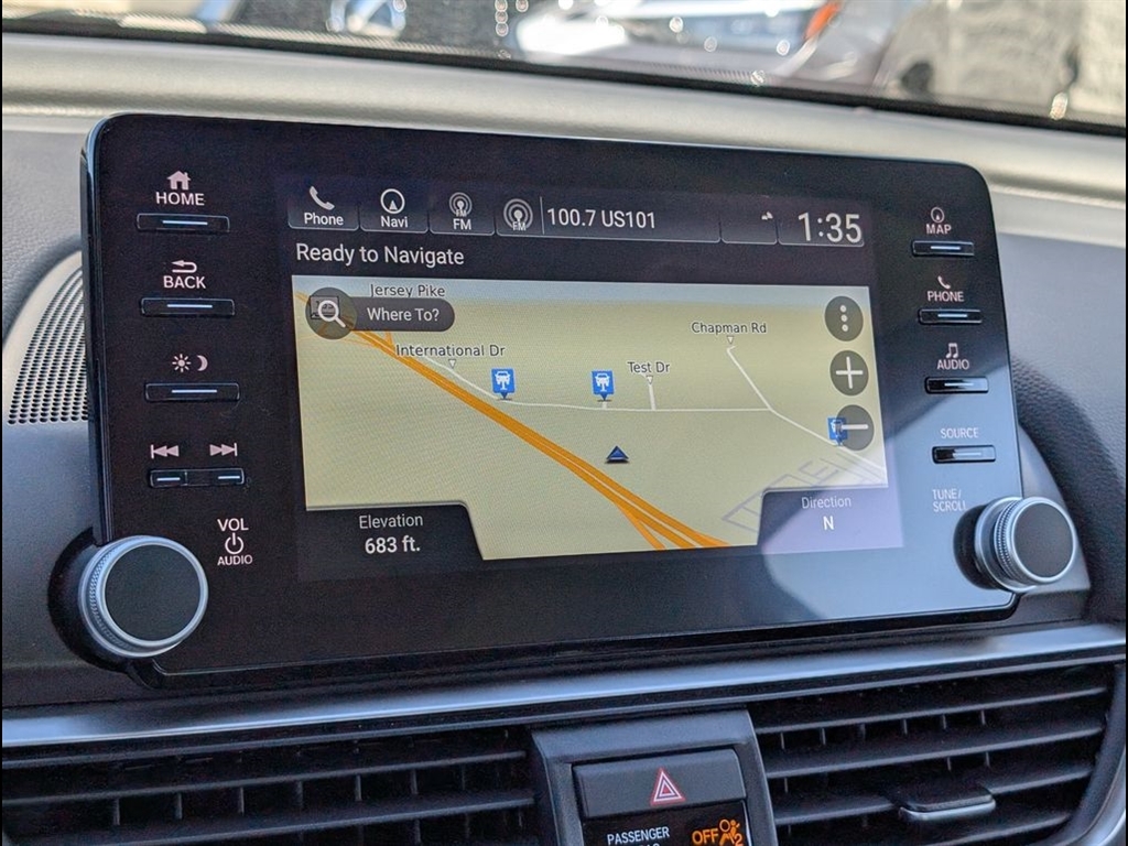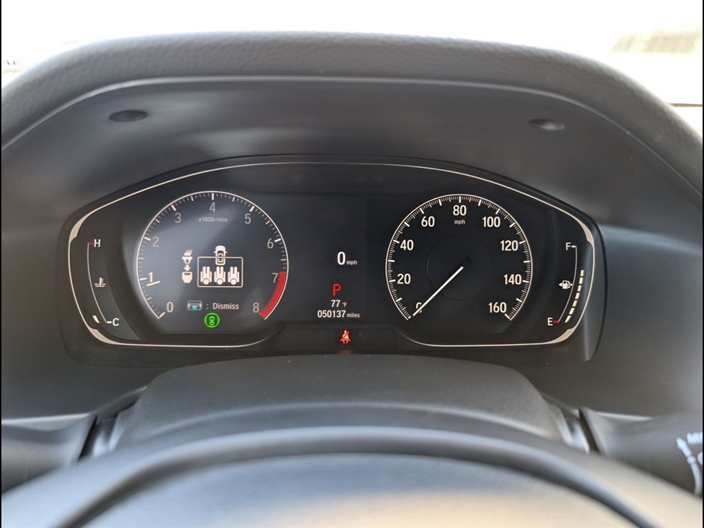 Dual front airbags, front seat-mounted side impact airbags, dual front/rear side curtain airbags with rollover sensor, dual front seat knee airbags, four-wheel disc brakes with anti-lock, brake assist, electronic brake distribution, hill start assist, engine immobilizer, rear-view camera, LED daytime running lights, automatic LED headlights, collision mitigation braking system, road departure mitigation system, forward collision warning, lane departure warning, lane keeping assist system, adaptive cruise control, traffic sign recognition system, automatic high-beam headlights, security system, push-button engine start, Bluetooth hands-free phone system, and tire pressure monitoring system. Sport adds LED fog lights and HondaLink.