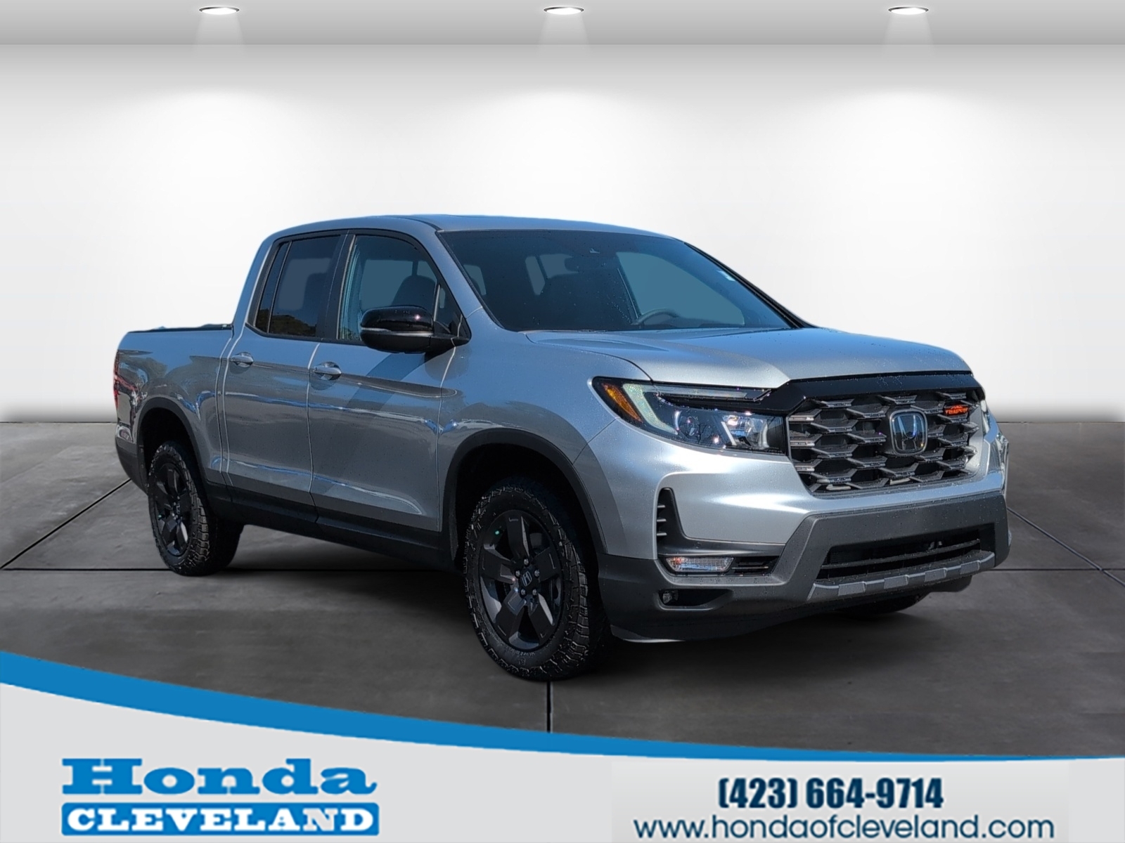 The price you see is our HOC Price. Contact us at (423) 664-9714 to confirm availability and to schedule your test drive. Solar Silver Metallic 2026 Honda Ridgeline TrailSport AWD 9-Speed Automatic Blk Lth Leather.