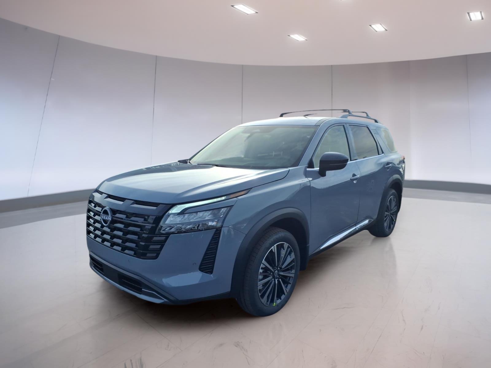 Boulder Gray Pearl 2026 Nissan Pathfinder Platinum FWD 9-Speed Automatic 3.5L V6 DOHC 13 Speakers, 3rd row seats: bench, 4-Piece Black Splash Guards, 4-Wheel Disc Brakes, ABS brakes, Air Conditioning, Alloy wheels, AM/FM radio: SiriusXM w/360L, Auto High-beam Headlights, Auto tilt-away steering wheel, Auto-dimming Rear-View mirror, Automatic temperature control, Bench Seat Carpeted Floor Mats, Bodyside moldings, Bose Premium Audio System, Brake assist, Bumpers: body-color, Cargo Area Protector, Cargo Net, Cargo Package, Climate Controlled Front Bucket Seats, Cross Bars, Delay-off headlights, Driver door bin, Driver vanity mirror, Dual front impact airbags, Dual front side impact airbags, Electronic Stability Control, Emergency communication system: NissanConnect Services, First Aid, Four wheel independent suspension, Front anti-roll bar, Front Bucket Seats, Front Center Armrest, Front dual zone A/C, Front reading lights, Fully automatic headlights, Garage door transmitter: HomeLink, Heads-Up Display, Heated door mirrors, Heated front seats, Heated rear seats, Heated steering wheel, Illuminated entry, Knee airbag, Low tire pressure warning, Memory seat, Navigation System, NissanConnect featuring Apple CarPlay and Android Auto, Occupant sensing airbag, Outside temperature display, Overhead airbag, Overhead console, Panic alarm, Passenger door bin, Passenger vanity mirror, Power door mirrors, Power driver seat, Power Liftgate, Power moonroof, Power passenger seat, Power steering, Power windows, Premium Paint, Radio data system, Radio: AM/FM Audio System with NissanConnect, Rain sensing wipers, Rear air conditioning, Rear anti-roll bar, Rear reading lights, Rear seat center armrest, Rear side impact airbag, Rear window defroster, Rear window wiper, Reclining 3rd row seat, Remote keyless entry, Security system, Semi-Aniline Leather-Appointed Seating Surfaces, Speed control, Speed-sensing steering, Speed-Sensitive Wipers, Split folding rear seat, Spoiler, Steering wheel memory, Steering wheel mounted audio controls, Tachometer, Telescoping steering wheel, Tilt steering wheel, Traction control, Trip computer, Turn signal indicator mirrors, Variably intermittent wipers, Ventilated front seats, Wheels: 20Machined Alloy. Recent Arrival! 20/27 City/Highway MPG