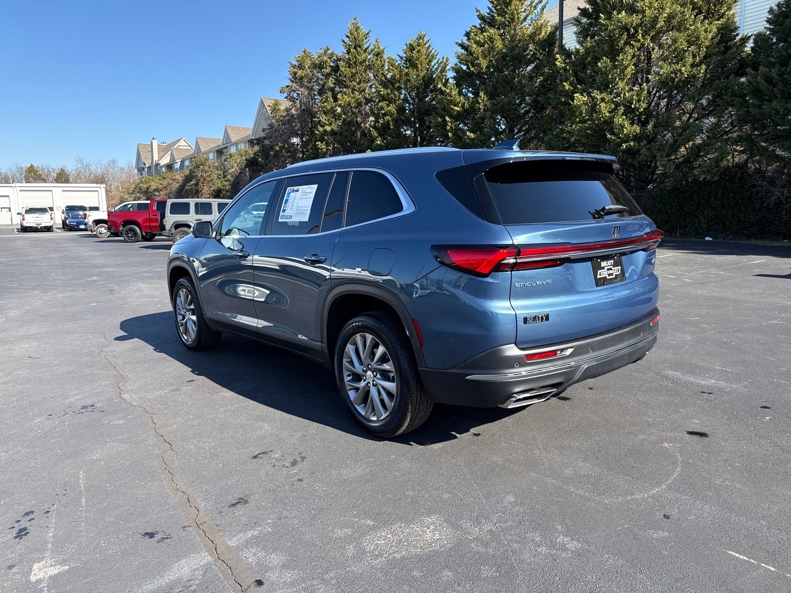 Beaty Chevrolet Company is excited to offer this charming 2025 Buick Enclave Preferred in Ocean Blue Metallic Beautifully equipped with Front Mounting License Plate Bracket Package, Preferred Equipment Group 1SD, FWD, 12 Speakers, 3rd row seats: split-bench, 4-Wheel Disc Brakes, ABS brakes, Air Conditioning, Alloy wheels, AM/FM radio: SiriusXM with 360L, Auto High-beam Headlights, Auto-dimming door mirrors, Auto-dimming Rear-View mirror, Automatic temperature control, Bose Premium 12-Speaker Audio System, Brake assist, Bumpers: body-color, Compass, Delay-off headlights, Deleted OnStar Basics, Driver 4-Way Power Lumbar Seat Adjuster, Driver 8-Way Power Seat Adjuster, Driver door bin, Driver vanity mirror, Dual front impact airbags, Dual front side impact airbags, Electronic Stability Control, Emergency communication system: OnStar and Buick connected services capable, Four wheel independent suspension, Front anti-roll bar, Front Bucket Seats, Front Center Armrest, Front dual zone A/C, Front Passenger 4-Way Power Lumbar Seat Adjuster, Front Passenger 6-Way Power Seat Adjuster, Front reading lights, Fully automatic headlights, Heated door mirrors, Heated Driver and Front Passenger Seats, Heated front seats, Heated steering wheel, Illuminated entry, Leather steering wheel, Leatherette Seat Trim, Low tire pressure warning, Navigation System, Occupant sensing airbag, Outside temperature display, Overhead airbag, Overhead console, Panic alarm, Passenger door bin, Passenger vanity mirror, Power door mirrors, Power driver seat, Power Liftgate, Power passenger seat, Power steering, Power windows, Premium audio system: Buick Infotainment System, Radio data system, Radio: Infotainment Center, Rear air conditioning, Rear anti-roll bar, Rear reading lights, Rear side impact airbag, Rear window defroster, Rear window wiper, Remote keyless entry, Security system, SiriusXM with 360L Trial Subscription, Speed control, Speed-sensing steering, Spoiler, Steering wheel mounted audio controls, Tachometer, Telescoping steering wheel, Tilt steering wheel, Traction control, Trip computer, Turn signal indicator mirrors, Variably intermittent wipers, Voltmeter, Wheels: 20 Alloy with Medium Android Finish, Wireless Apple CarPlay, and Wireless Google Android Auto! Vin decoding may not always be 100% accurate. Vehicle descriptions may not always be accurate. Please see Dealership Sales Associate.Beaty Chevrolet is Family Owned and Operated since 1933.