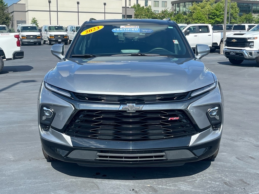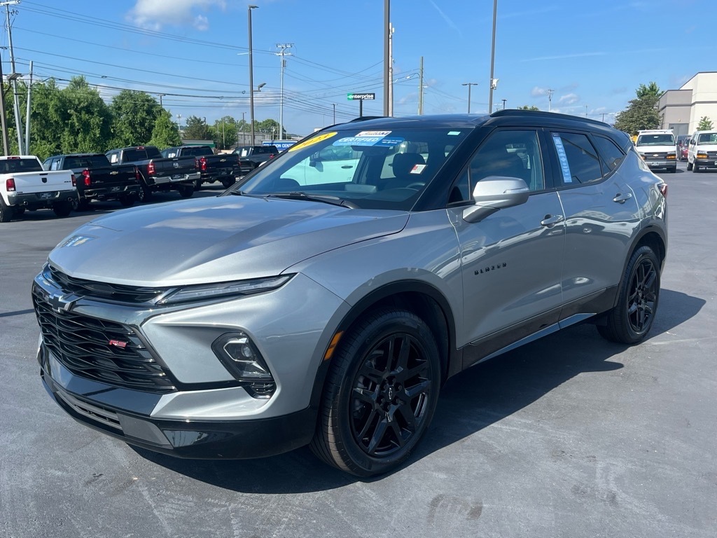 Beaty Chevrolet Company is very proud to offer this stunning-looking 2023 Chevrolet Blazer RS in Sterling Metallic Beautifully equipped with Enhanced Convenience Package (Heated Rear Outboard Seating Positions, Memory Settings For Driver Seat & Exterior Mirrors, Power Tilt & Telescoping Steering Column, and Ventilated Driver & Front Passenger Seats), Interior Protection Package (LPO) (Premium All-Weather Cargo Mat (LPO) and Premium All-Weather Floor Mats), Preferred Equipment Group 1RS (Heated Steering Wheel and Rear Park Assist w/Audible Warning), Chevrolet Certified Pre-Owned Certified, 3.49 Final Drive Axle Ratio, 4-Wheel Disc Brakes, 6-Way Power Front Passenger Seat Adjuster, 8 Speakers, 8-Way Power Driver Seat Adjuster, ABS brakes, Air Conditioning, Alloy wheels, AM/FM radio: SiriusXM with 360L, Apple CarPlay/Android Auto, Auto High-beam Headlights, Auto-dimming door mirrors, Auto-dimming Rear-View mirror, Automatic temperature control, Black 2-Tone Roof, Black Lug Nuts (LPO), Bose Premium 8-Speaker Audio System Feature, Brake assist, Bumpers: body-color, Child-Seat-Sensing Airbag, Compass, Delay-off headlights, Driver door bin, Driver vanity mirror, Dual front impact airbags, Dual front side impact airbags, Electronic Stability Control, Emergency communication system: OnStar and Chevrolet connected services capable, Four wheel independent suspension, Front anti-roll bar, Front Bucket Seats, Front Center Armrest, Front dual zone A/C, Front reading lights, Fully automatic headlights, Garage door transmitter, Heated door mirrors, Heated Driver & Front Passenger Seats, Heated front seats, Heated steering wheel, Illuminated entry, Knee airbag, Leather Shift Knob, Low tire pressure warning, Navigation System, Not Equipped w/Rear Park Assist, Occupant sensing airbag, Outside temperature display, Overhead airbag, Overhead console, Panic alarm, Passenger door bin, Passenger vanity mirror, Perforated Leather-Appointed Seat Trim, Power door mirrors, Power Driver Lumbar C