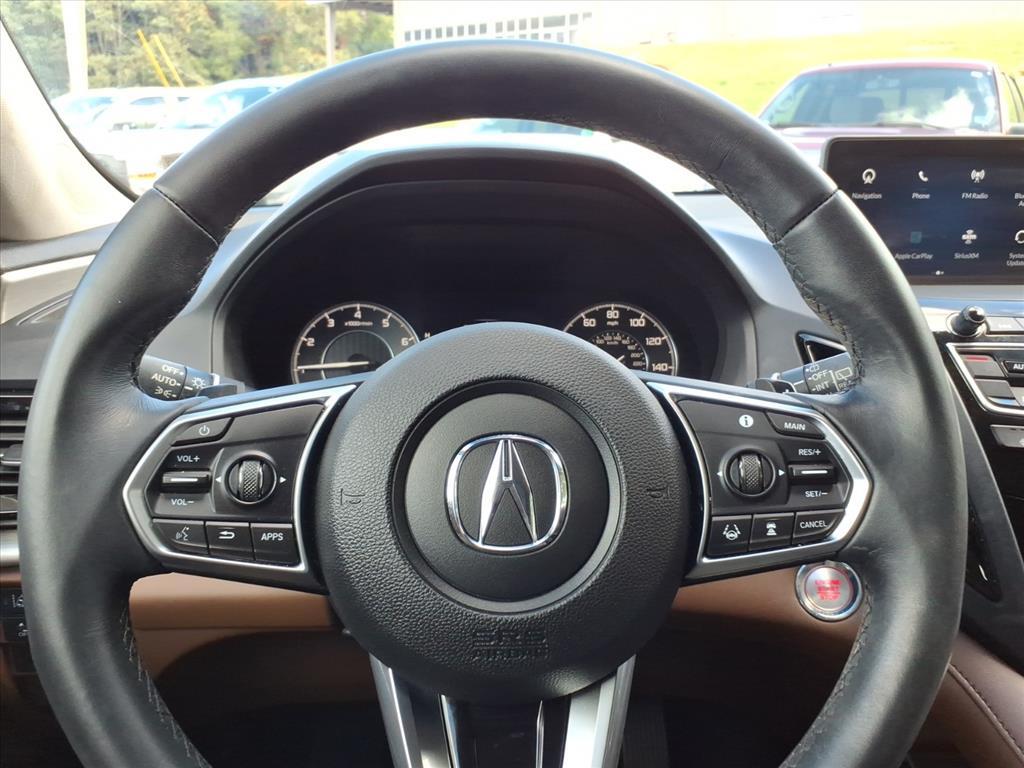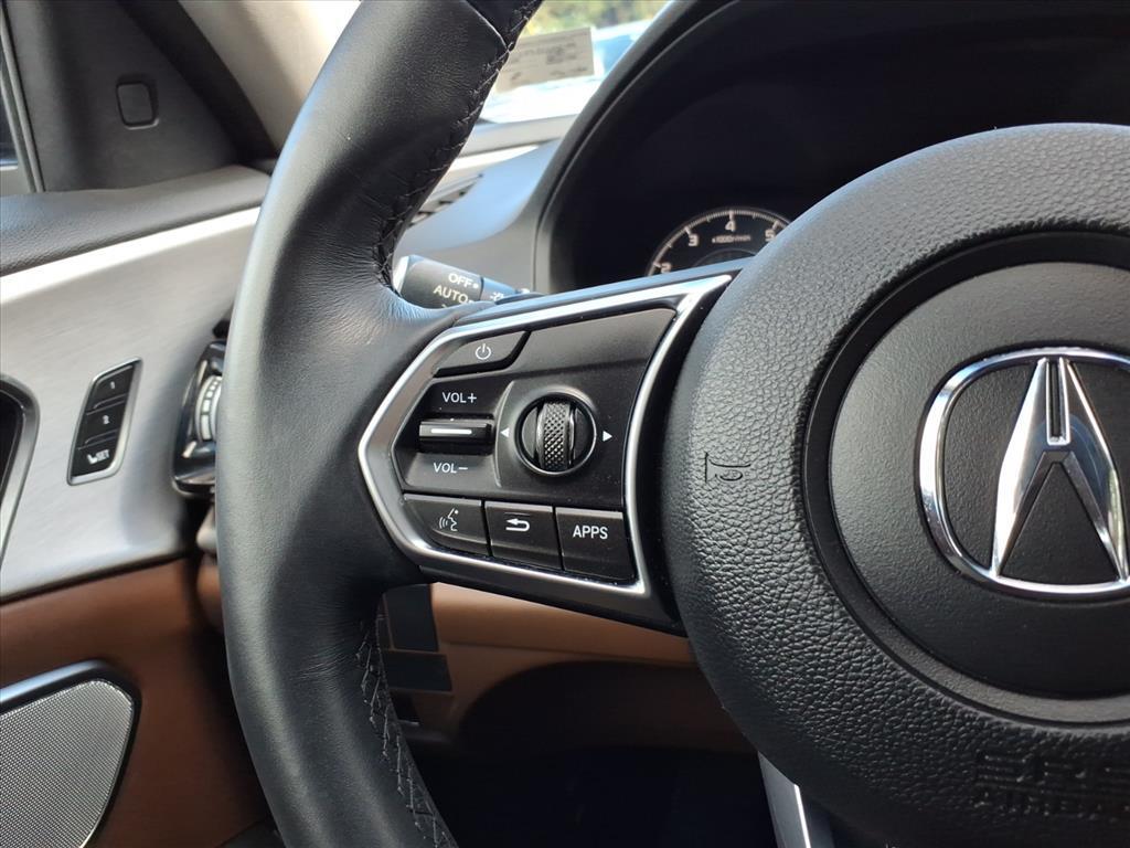Optional safety features include rear cross traffic monitor, adaptive cruise control, front/rear parking sensors, rain-sensing windshield wipers, navigation system, AcuraLink, remote engine start, and fog lights.