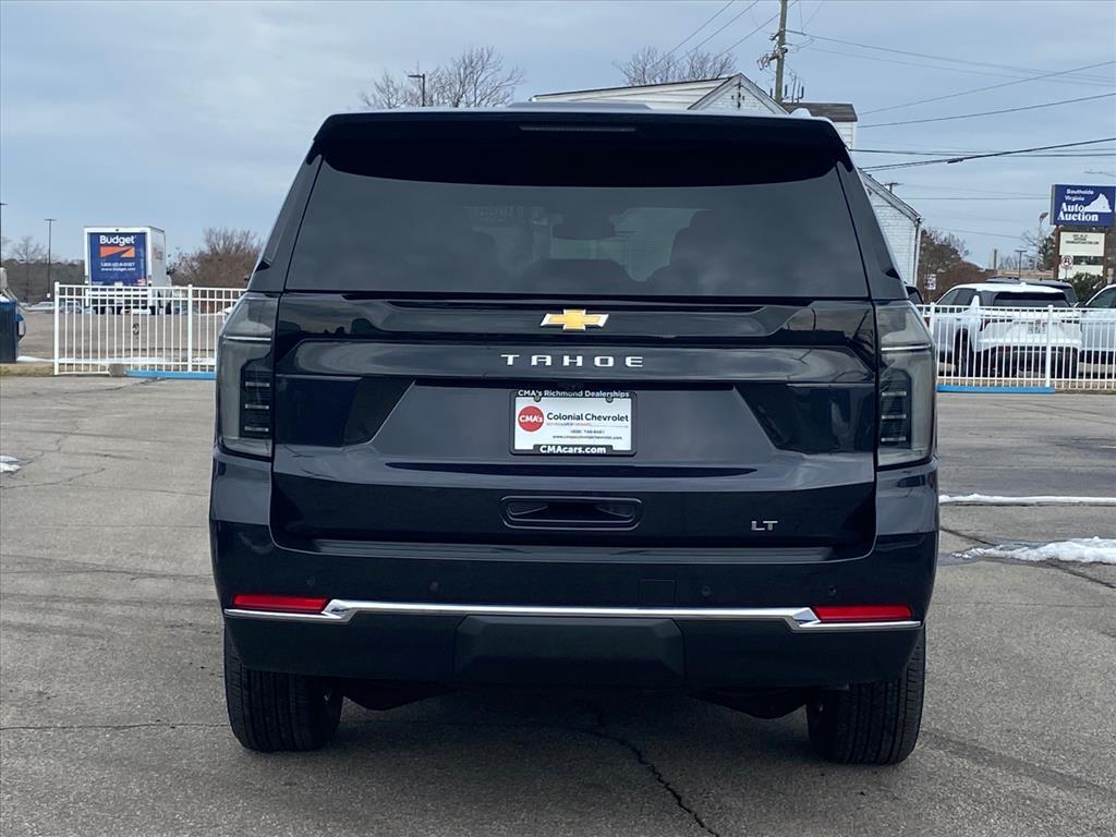 This New 2026 Chevrolet Tahoe LT, is Dark Ash Metallic in color with a Jet Black interior. Stock Number FMVN4K. You can connect with us by calling . Important Package and Feature Information Safety and Security The vehicle is equipped with a system that senses, and then prepares, the vehicle and/or occupants, for an impending forward collision. The vehicle constantly monitors the roadway in front of the vehicle and identifies and tracks pedestrians on an interior display. If the system determines a likely impact, it will automatically take preventative steps to avoid hitting the pedestrian. The vehicle is equipped with a camera that displays an image of the area behind the vehicle on an interior display. The camera is equipped with its own washer.Technology and Telematics Apple CarPlay/Android Auto smart device wireless mirroring Mobile devices can wirelessly connect to the internet through the vehicles private mobile network. ENGINE, 5.3L ECOTEC3 V8, DARK ASH METALLIC, JET BLACK, LEATHER-APPOINTED SEATING SURFACES At CMAs Colonial Chevrolet, were here to Serve you! Our staff is 100% dedicated to customer satisfaction and we understand that you need clear, transparent information throughout the car buying process. With our live market pricing philosophy, we offer the right cars at the right price, and the transparency to back it up!