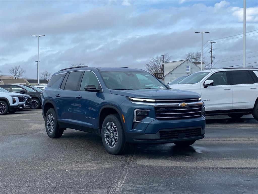 This New 2026 Chevrolet Traverse FWD LT, is Lakeshore Blue Metallic in color with a JET BLACK interior. Stock Number C7438. You can connect with us by calling . Important Package and Feature Information Safety and Security The vehicle is equipped with a system that senses, and then prepares, the vehicle and/or occupants, for an impending forward collision. The vehicle constantly monitors the roadway in front of the vehicle and identifies and tracks pedestrians on an interior display. If the system determines a likely impact, it will automatically take preventative steps to avoid hitting the pedestrian. The vehicle is equipped with a camera that displays an image of the area behind the vehicle on an interior display. The camera is equipped with its own washer.Technology and Telematics Apple CarPlay/Android Auto smart device wireless mirroring Mobile devices can wirelessly connect to the internet through the vehicles private mobile network. ENGINE, 2.5L TURBO DOHC SIDI WITH VARIABLE VALVE TIMING (VVT), LAKESHORE BLUE METALLIC At CMAs Colonial Chevrolet, were here to Serve you! Our staff is 100% dedicated to customer satisfaction and we understand that you need clear, transparent information throughout the car buying process. With our live market pricing philosophy, we offer the right cars at the right price, and the transparency to back it up!