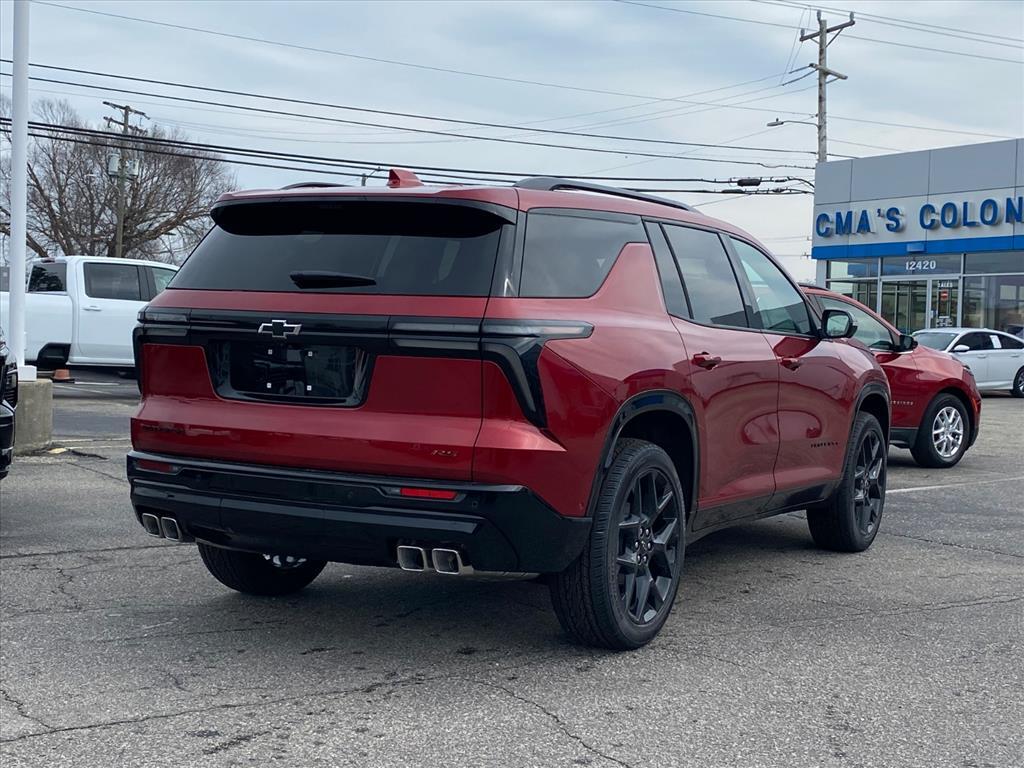 This New 2026 Chevrolet Traverse FWD RS, is Radiant Red Tintcoat in color with a RS Jet Black with Torch Red accents interior. Stock Number FTWHNT. You can connect with us by calling . Important Package and Feature Information Convenience If the vehicle detects prolonged driver unresponsiveness it will automatically bring the vehicle to a stop and turn on the hazard lights. If equipped, emergency services will be contacted.Safety and Security A system of this type allows the driver to travel for extended periods of time without providing steering input to the vehicle, however they must be ready to resume control of the vehicle at any point. The vehicle is equipped with a system that senses, and then prepares, the vehicle and/or occupants, for an impending forward collision. The vehicle constantly monitors the roadway in front of the vehicle and identifies and tracks pedestrians on an interior display. If the system determines a likely impact, it will automatically take preventative steps to avoid hitting the pedestrian.Technology and Telematics Apple CarPlay/Android Auto smart device wireless mirroring ENGINE, 2.5L TURBO DOHC SIDI WITH VARIABLE VALVE TIMING (VVT), RADIANT RED TINTCOAT, RS JET BLACK WITH TORCH RED ACCENTS, PERFORATED LEATHER-APPOINTED SEAT TRIM At CMAs Colonial Chevrolet, were here to Serve you! Our staff is 100% dedicated to customer satisfaction and we understand that you need clear, transparent information throughout the car buying process. With our live market pricing philosophy, we offer the right cars at the right price, and the transparency to back it up!