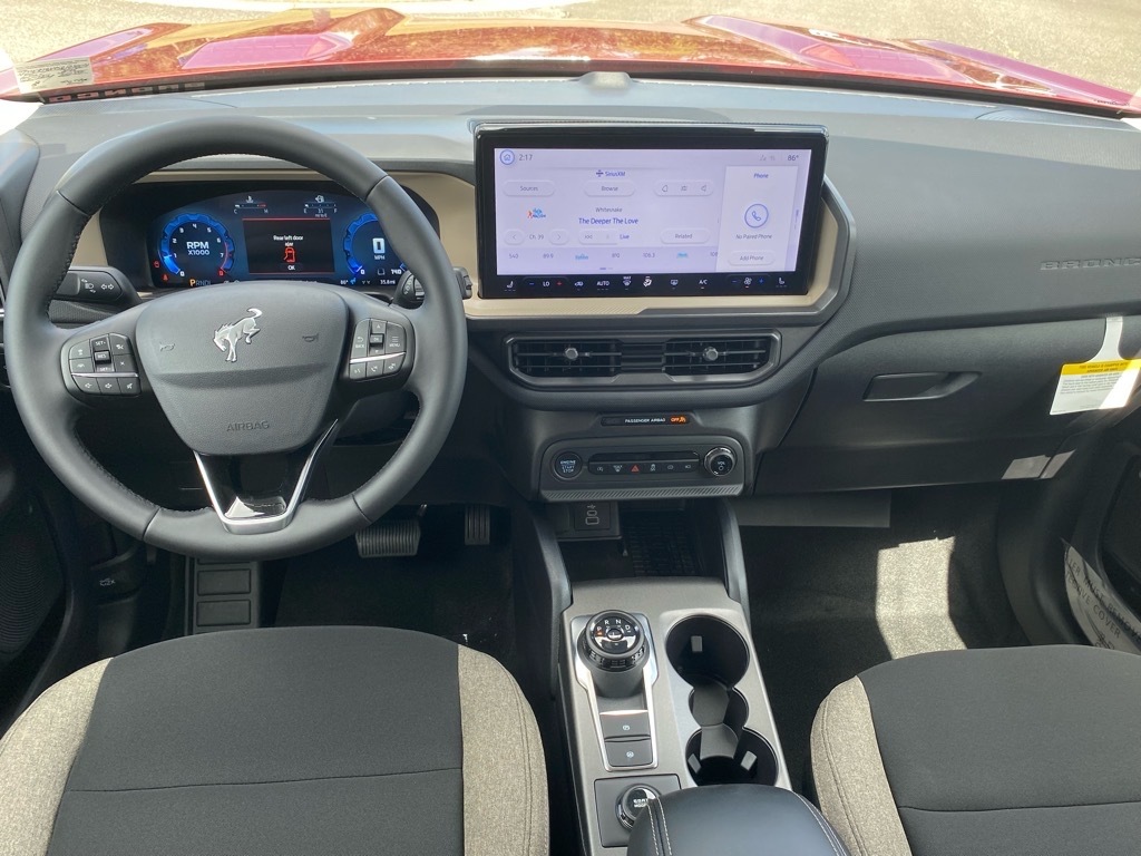 25/30 City/Highway MPG Ruby Red Metallic 2025 Ford Bronco Sport Big Bend 4WD 8-Speed Automatic 1.5L EcoBoost Convenience Package (Front Driver/Passenger Seat Back Map Pockets, Heated 8-Way Power Drivers Seat, LED Fog Lamps, Premium Wrapped Steering Wheel, and Universal Garage Door Opener (UGDO)), Equipment Group 200A, 4-Wheel Disc Brakes, 6 Speakers, ABS brakes, Air Conditioning, Alloy wheels, AM/FM radio: SiriusXM, AM/FM Stereo, Auto High-beam Headlights, Automatic temperature control, Brake assist, Cloth w/Easy-to-Clean Front Bucket Seats, Compass, Delay-off headlights, Driver door bin, Driver vanity mirror, Dual front impact airbags, Dual front side impact airbags, Electronic Stability Control, Emergency communication system: SYNC 4 911 Assist, Four wheel independent suspension, Front anti-roll bar, Front Bucket Seats, Front Center Armrest, Front License Plate Bracket, Front reading lights, Fully automatic headlights, Heated door mirrors, Illuminated entry, Keyless Entry Keypad (DIO), Knee airbag, Low tire pressure warning, Occupant sensing airbag, Outside temperature display, Overhead airbag, Overhead console, Panic alarm, Passenger door bin, Passenger vanity mirror, Power door mirrors, Power steering, Power windows, Radio data system, Rear anti-roll bar, Rear Parking Sensors, Rear reading lights, Rear seat center armrest, Rear window defroster, Rear window wiper, Remote keyless entry, Security system, SiriusXM, Speed control, Speed-sensing steering, Speed-Sensitive Wipers, Split folding rear seat, Steering wheel mounted audio controls, SYNC 4 w/Enhanced Voice Recognition, Tachometer, Telescoping steering wheel, Tilt steering wheel, Traction control, Trip computer, Variably intermittent wipers, and Wheels: 17Carbonized Gray-Painted Aluminum. Price includes: $2000 - Retail Customer Cash. Exp. 03/31/2026