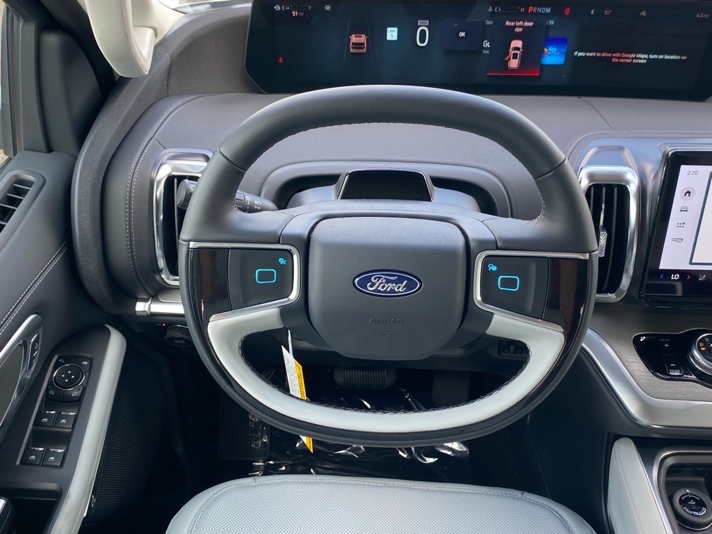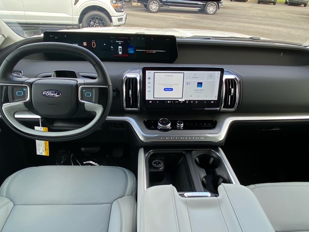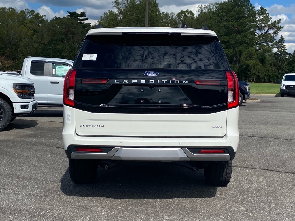 White Metallic 2025 Ford Expedition Max Platinum 4WD 10-Speed Automatic EcoBoost 3.5L V6 GTDi DOHC 24V Twin Turbocharged Connectivity Package (One-Time Purchase), Drivers Package (Continuous Control Damping Suspension, Radio: B&O Unleashed Sound System by Bang & Olufsen, and SiriusXM w/360L), Equipment Group 600A Standard Package (2nd Row Power-Folding Captains Chairs), 10 Speakers, 3.73 Axle Ratio, 3rd row seats: split-bench, 4-Wheel Disc Brakes, ABS brakes, Adjustable pedals, Air Conditioning, Alloy wheels, AM/FM radio: SiriusXM with 360L, Apple CarPlay/Android Auto, Auto High-beam Headlights, Auto-dimming door mirrors, Auto-dimming Rear-View mirror, Automatic temperature control, BlueCruise Equipped (1-Year Plan), Brake assist, Bumpers: body-color, Compass, Delay-off headlights, Driver door bin, Driver vanity mirror, Dual front impact airbags, Dual front side impact airbags, Electronic Stability Control, Emergency communication system: 911 Assist, Engine Block Heater, Exterior Parking Camera Rear, Four wheel independent suspension, Front anti-roll bar, Front Bucket Seats, Front Center Armrest, Front dual zone A/C, Front License Plate Bracket, Front reading lights, Fully automatic headlights, Garage door transmitter, Genuine wood dashboard insert, Genuine wood door panel insert, Heated & Ventilated Leather Front Captains Chairs, Heated door mirrors, Heated front seats, Heated rear seats, Heated steering wheel, Illuminated entry, Leather steering wheel, Low tire pressure warning, Memory seat, Navigation System, Occupant sensing airbag, Outside temperature display, Overhead airbag, Overhead console, Panic alarm, Passenger door bin, Passenger vanity mirror, Pedal memory, Power door mirrors, Power driver seat, Power moonroof: Vista Roof, Power passenger seat, Power steering, Power windows, Radio data system, Radio: B&O Sound System by Bang & Olufsen, Rain sensing wipers, Rear air conditioning, Rear anti-roll bar, Rear reading lights, Rear window defroster, Rear window wiper, Reclining 3rd row seat, Remote keyless entry, Security system, Speed control, Speed-sensing steering, Speed-Sensitive Wipers, Split folding rear seat, Spoiler, Steering wheel memory, Steering wheel mounted audio controls, Tachometer, Telescoping steering wheel, Tilt steering wheel, Traction control, Trip computer, Turn signal indicator mirrors, Variably intermittent wipers, Ventilated front seats, Voltmeter, and Wheels: 20Ebony Bright Machined Aluminum. Price includes: $1000 - Presiden