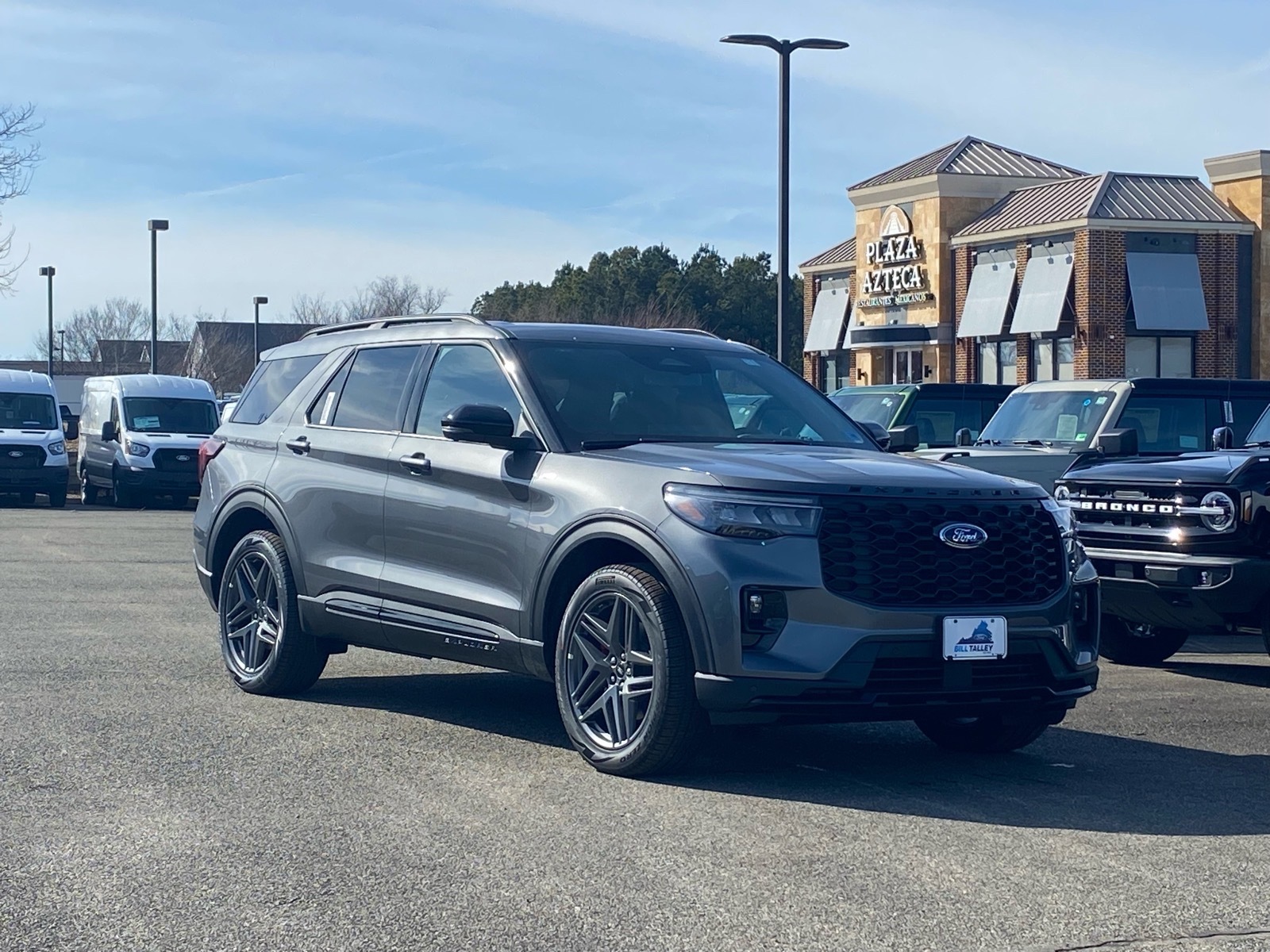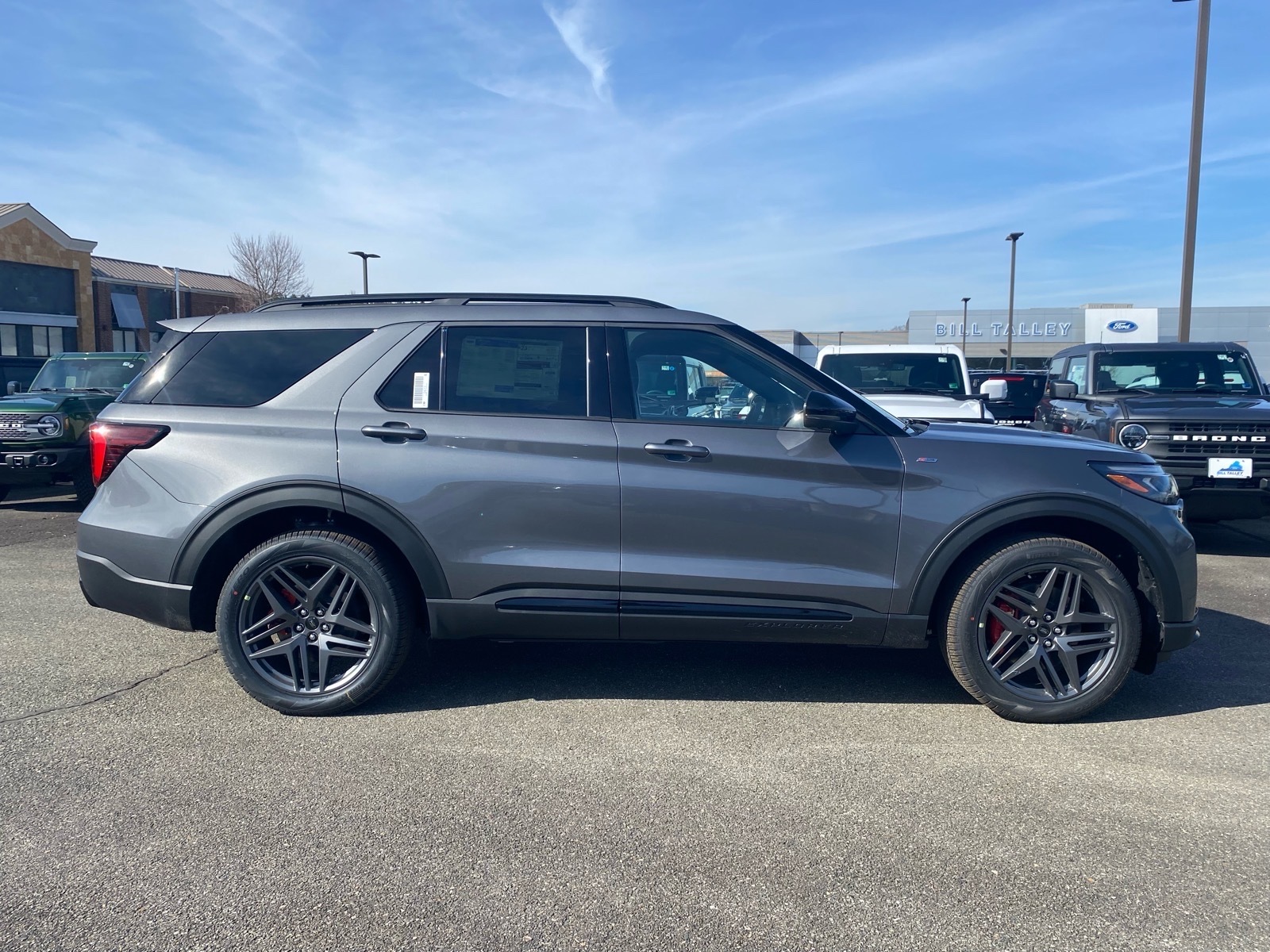20/27 City/Highway MPG Gray 2026 Ford Explorer ST-Line 4WD 10-Speed Automatic 2.3L EcoBoost I-4 4WD. Equipment Group 300A Standard Package (Heated Unique Cloth Captains Chairs, Radio: B&O Sound System by Bang and Olufsen, and Wheels: 20Ebony-Painted Machined Aluminum), Ford Connectivity Package (one-Time Purchase - 7 Years), Premium Package (110V/150W AC Power Outlet, 2nd Row Heated Seats, Ambient Lighting, Auto-Dimming Interior Rear-View Mirror, Manual-Folding Sideview Mirrors, Memory Drivers Seat, and Rain-Sensing Wipers (front Only)), ST-Line Street Pack (Performance Brakes, Red Painted Performance Front and Rear Brake Calipers, and Wheels: 21Magnetite-Painted Aluminum), 4WD, 10 Speakers, 2nd Row Captains Chairs w/E-Z Entry and Armrest, 3rd row seats: bench, 4-Wheel Disc Brakes, ABS brakes, Air Conditioning, Alloy wheels, AM/FM radio: SiriusXM with 360L, Apple CarPlay/Android Auto, Auto High-beam Headlights, Automatic temperature control, BlueCruise (equipment 1-Year 90-Day Plan), BlueCruise Hardware, Brake assist, Bumpers: body-color, Compass, Delay-off headlights, Driver door bin, Driver vanity mirror, Dual front impact airbags, Dual front side impact airbags, Electronic Stability Control, Emergency communication system: 911 Assist, Exterior Parking Camera Rear, Four wheel independent suspension, Front anti-roll bar, Front Bucket Seats, Front Center Armrest, Front dual zone A/C, Front fog lights, Front License Plate Bracket, Front reading lights, Fully automatic headlights, Garage door transmitter, Heated door mirrors, Heated front seats, Heated steering wheel, Illuminated entry, Knee airbag, Leather steering wheel, Low tire pressure warning, Navigation System, Occupant sensing airbag, Outside temperature display, Overhead airbag, Overhead console, Panic alarm, Panoramic Fixed Glass Roof with Power Shade, Passenger door bin, Passenger vanity mirror, Power door mirrors, Power driver seat, Power Liftgate, Power passenger seat, Power steering, Power windows, Rear air conditioning, Rear anti-roll bar, Rear reading lights, Rear window defroster, Rear window wiper, Remote keyless entry, SecuriCode Keyless Entry Keypad, Security system, Speed control, Speed-sensing steering, Speed-Sensitive Wipers, Split folding rear seat, Spoiler, Steering wheel mounted audio controls, Tachometer, Telescoping steering wheel, Tilt steering wheel, Traction control, Trip computer, and Variably intermittent wipers. Price includes: $3500 - Retail Customer Cash. Exp. 03/3